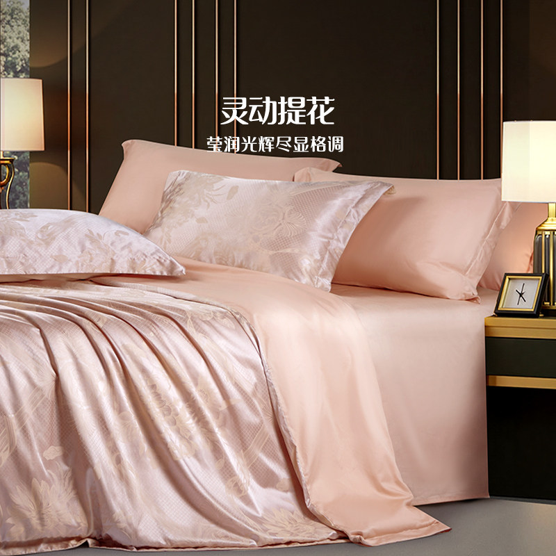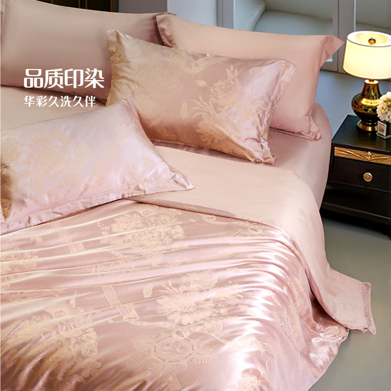 富安娜家纺轻奢提花床单四件套纯棉全棉被套亲肤裸睡粉色床上用品