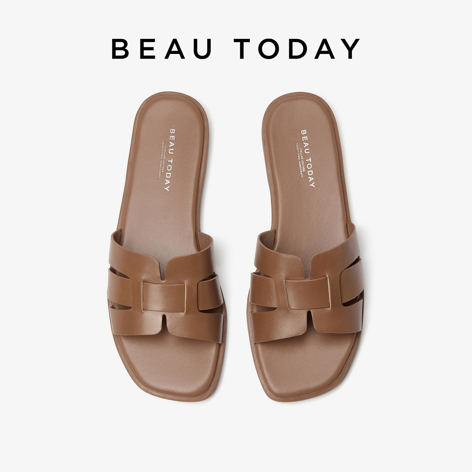 BeauToday真皮拖鞋女款真皮2025新款BT中跟拖鞋羊皮外穿凉鞋夏季