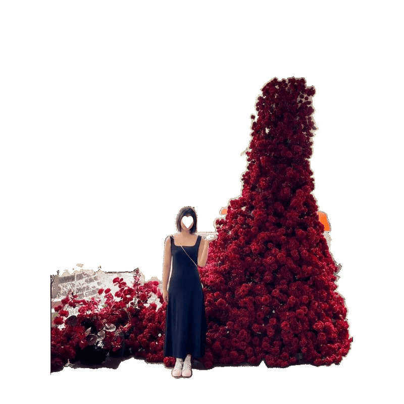 网红打卡背景花墙玫瑰瀑布墙布置仿真假红玫瑰花冰川婚庆塑料花束