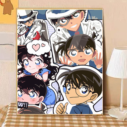 宝藏湾 数字油画diy名侦探柯南填充油画卡通动漫手绘数字画装饰画