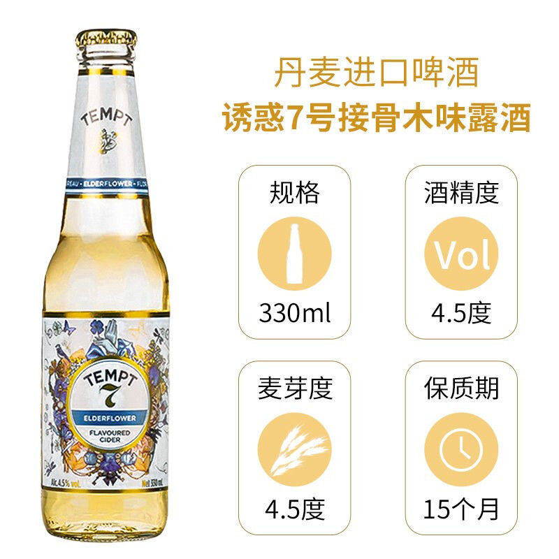 诱惑7号啤酒 丹麦七号接骨木味露酒女士甜酒 1号3号8号9号