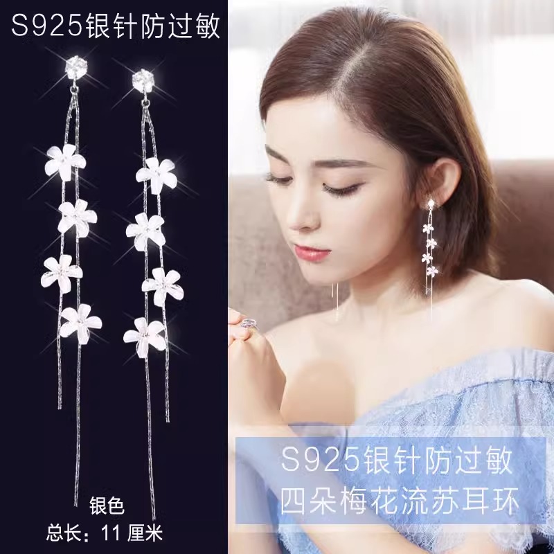 2025耳环新款潮长款流苏耳饰防过敏999纯银耳钉网红仙气耳坠百搭