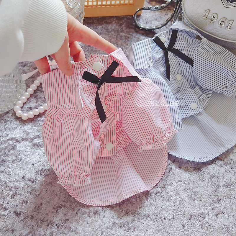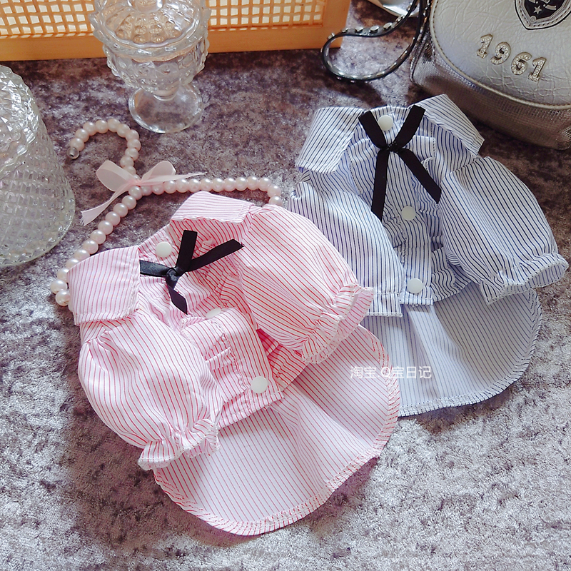 可爱条纹衬衫宠物猫咪比熊雪纳瑞泰迪狗狗衣服春夏装母狗公狗情侣