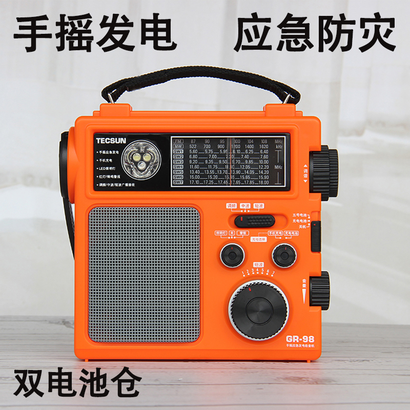 Tecsun/德生GR-98手摇自发电收音机防灾难战备家庭应急短波手电筒