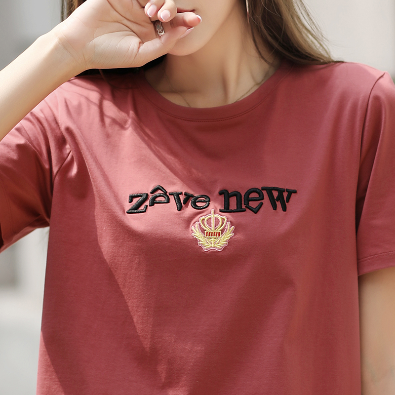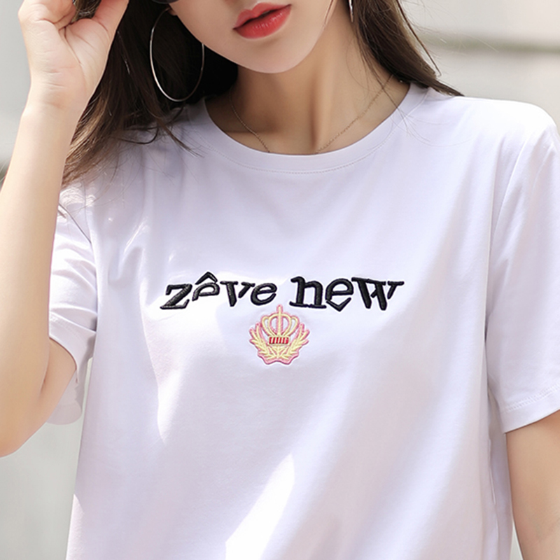 丝光棉宽松t恤女短袖妈妈夏装2025新款纯棉大码字母刺绣上衣体恤