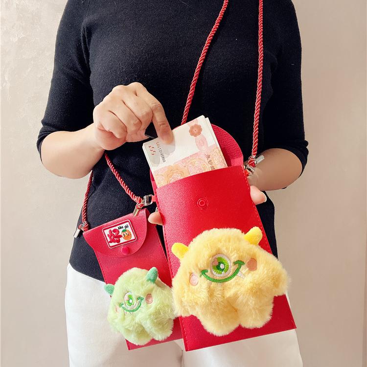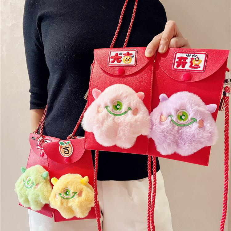 新款创意毛绒喜包儿童满月周岁利是封斜跨过年压岁钱万元通用红包