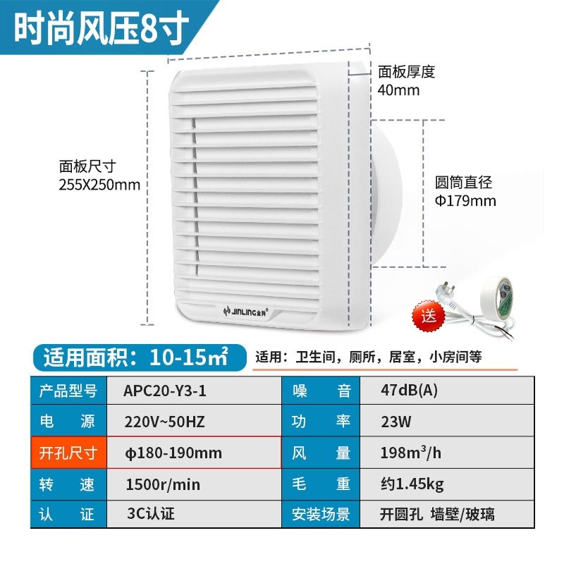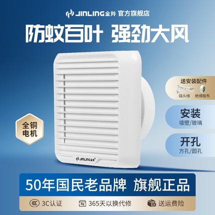金羚换气扇 4寸6玻璃窗排气扇厕卫生间所抽风机风压8寸厨房油烟