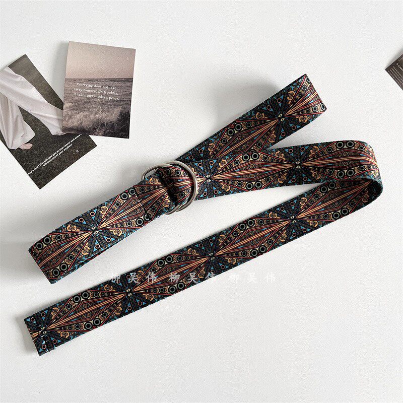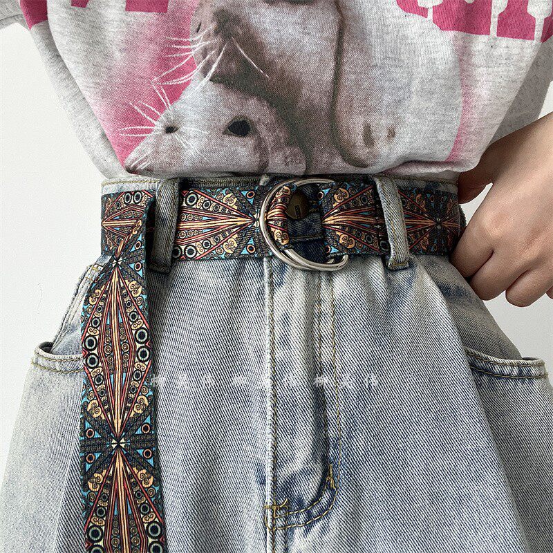 民族风牛仔裤工装裤双环扣腰带女百搭加长学生帆布皮带男潮年轻人