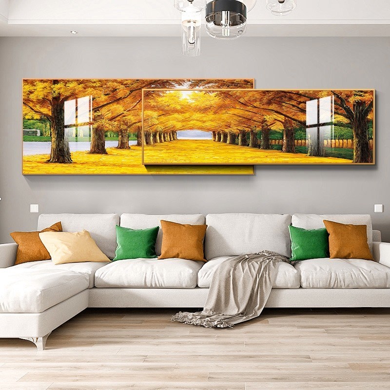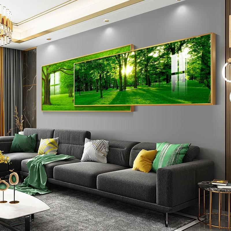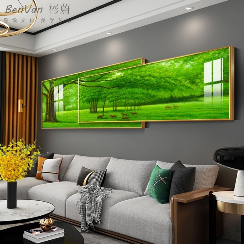网红客厅壁画风景装饰画现代简约沙发背景墙挂画树U林叠加组合晶
