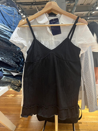 BM官网美式复古黑色V领吊带背心bm纯棉内搭打底衫辣妹上衣女夏