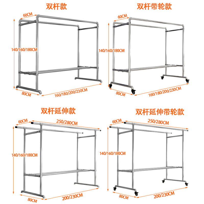 双杆镀锌钢管落地不生锈晾衣架