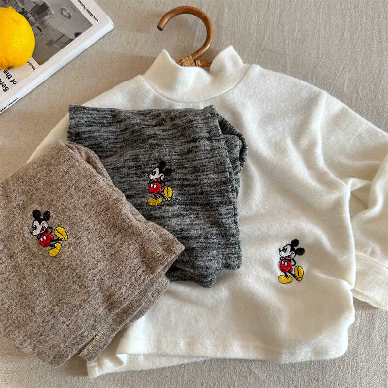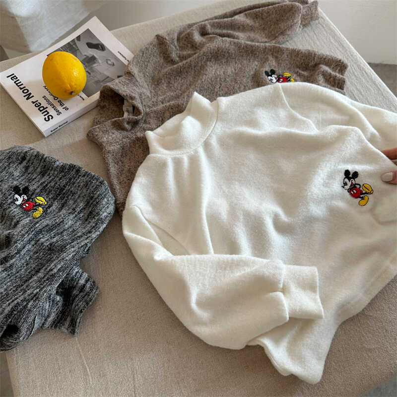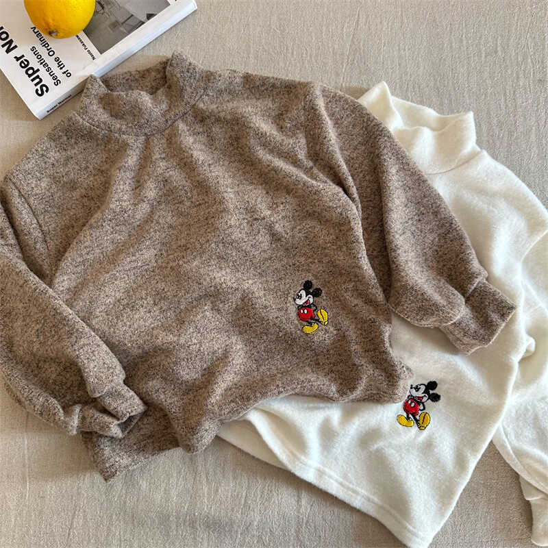 儿童德绒半高领打底衫秋冬米奇刺绣T恤男童女童内搭长袖保暖上衣