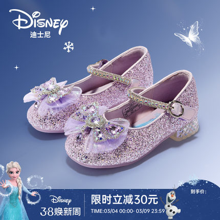 迪士尼童鞋艾莎公主鞋2026新款女童水晶鞋软底儿童单鞋亮片演出鞋