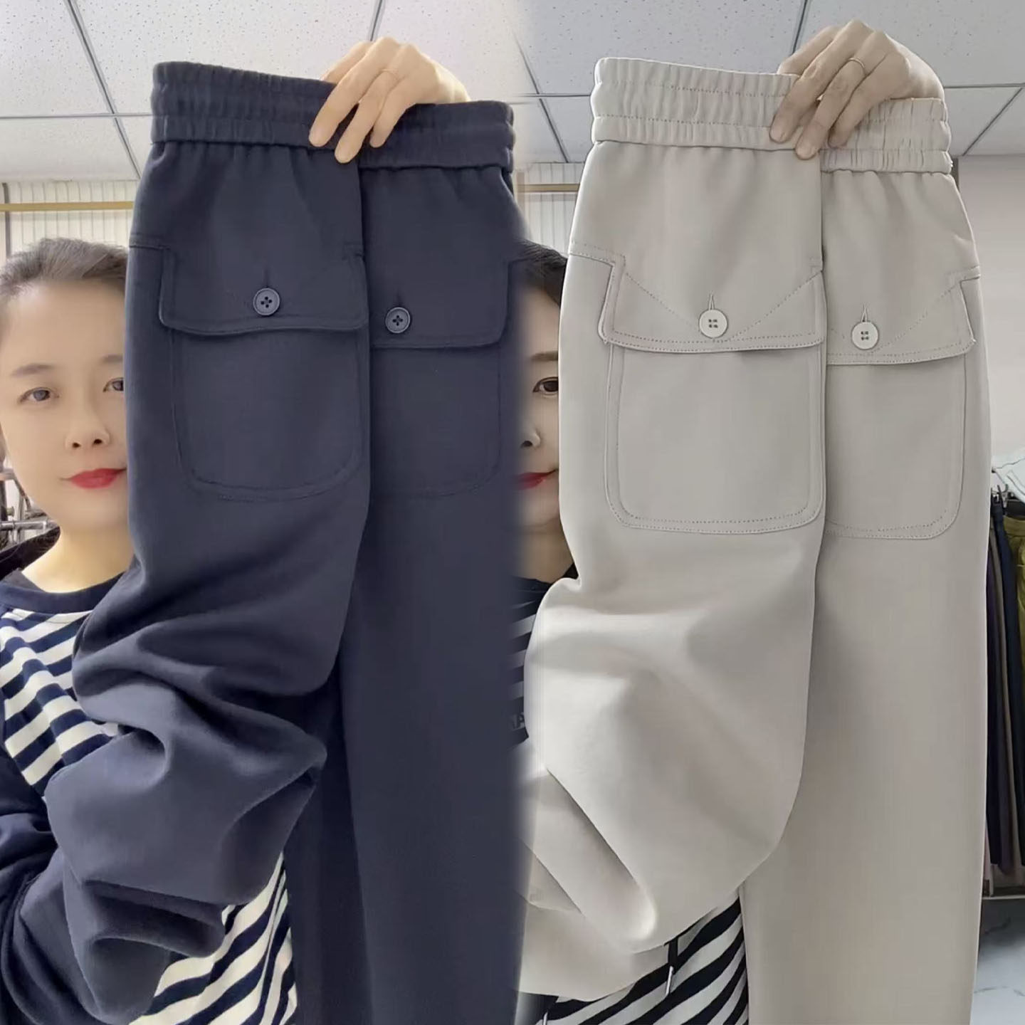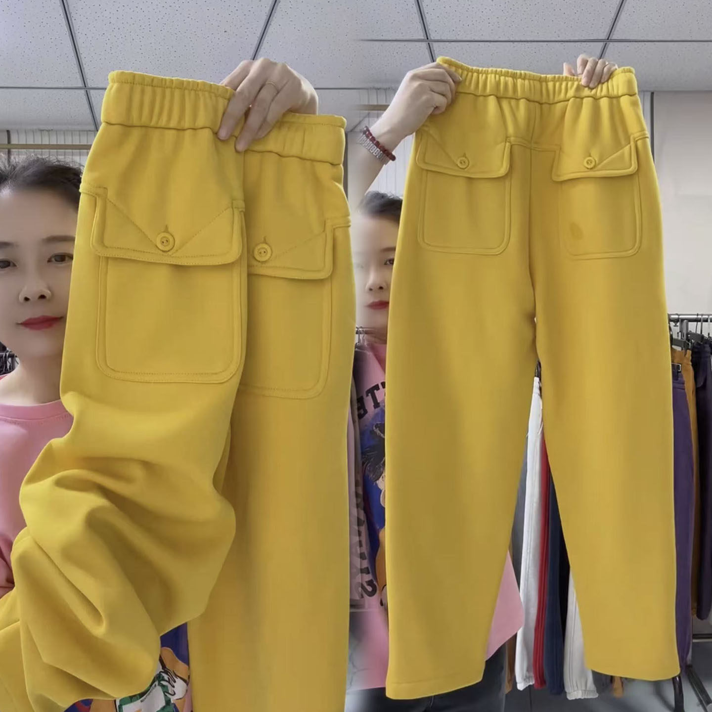 加绒加厚直筒卫裤女冬季新款高腰休闲运动裤宽松显瘦小脚哈伦裤