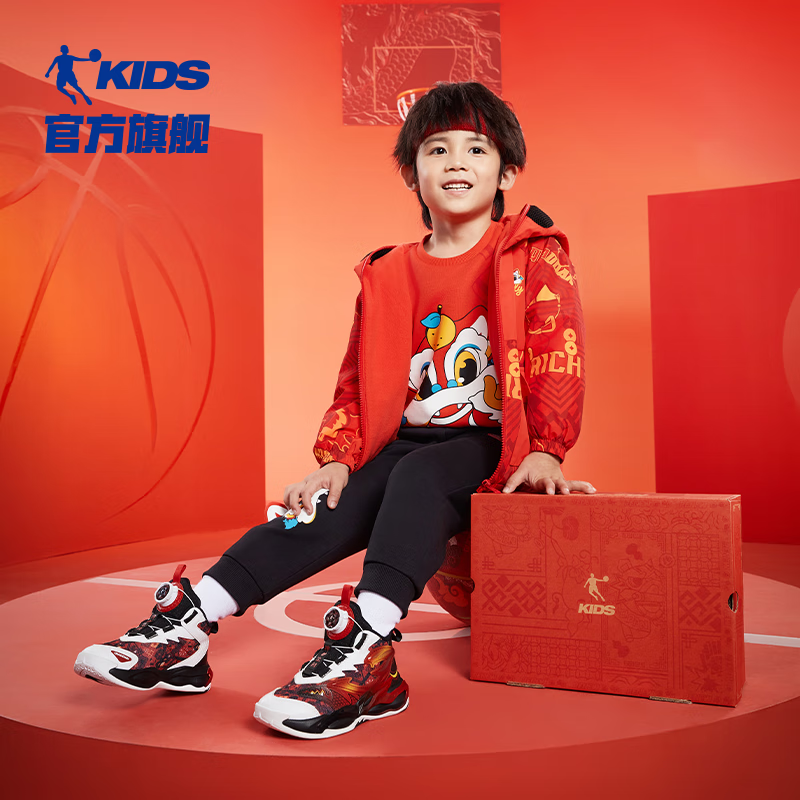 乔丹腾蛇小童鞋2026新年红色战靴旋钮扣男童运动鞋儿童专业篮球鞋