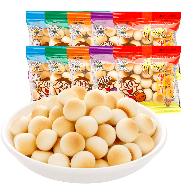 旺旺旺仔小馒头90袋原味牛奶味儿童饼干怀旧零食品小吃整箱批发