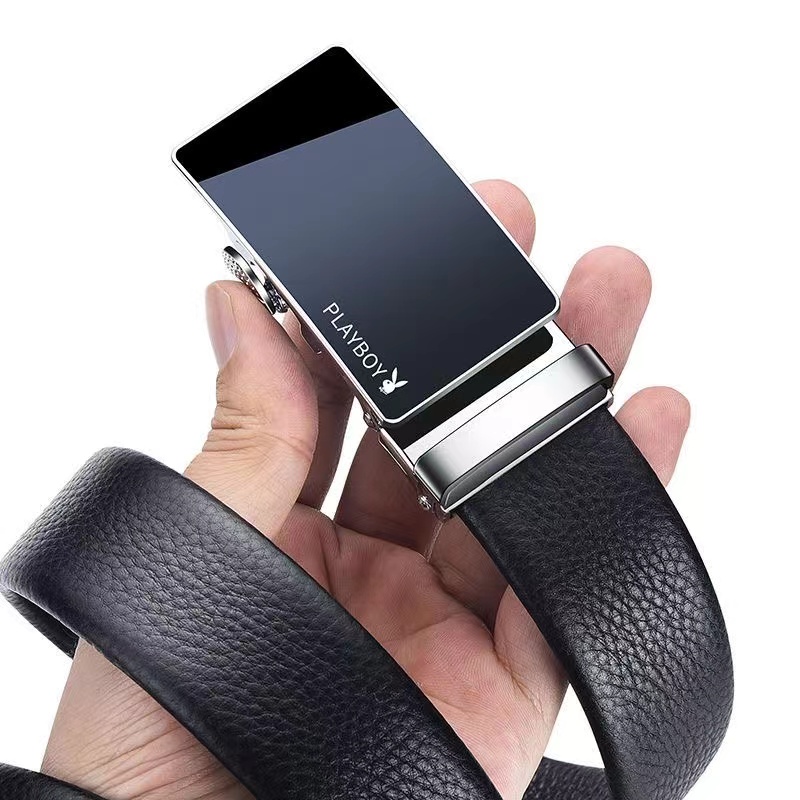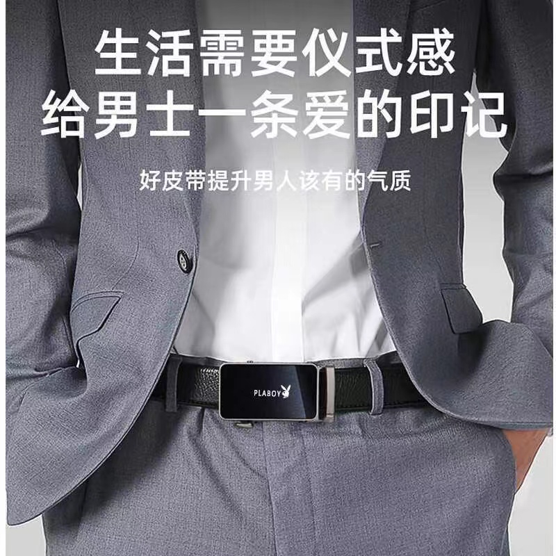花花公子皮带男士真皮自动扣腰带男中青年商务百搭纯牛皮裤腰带男