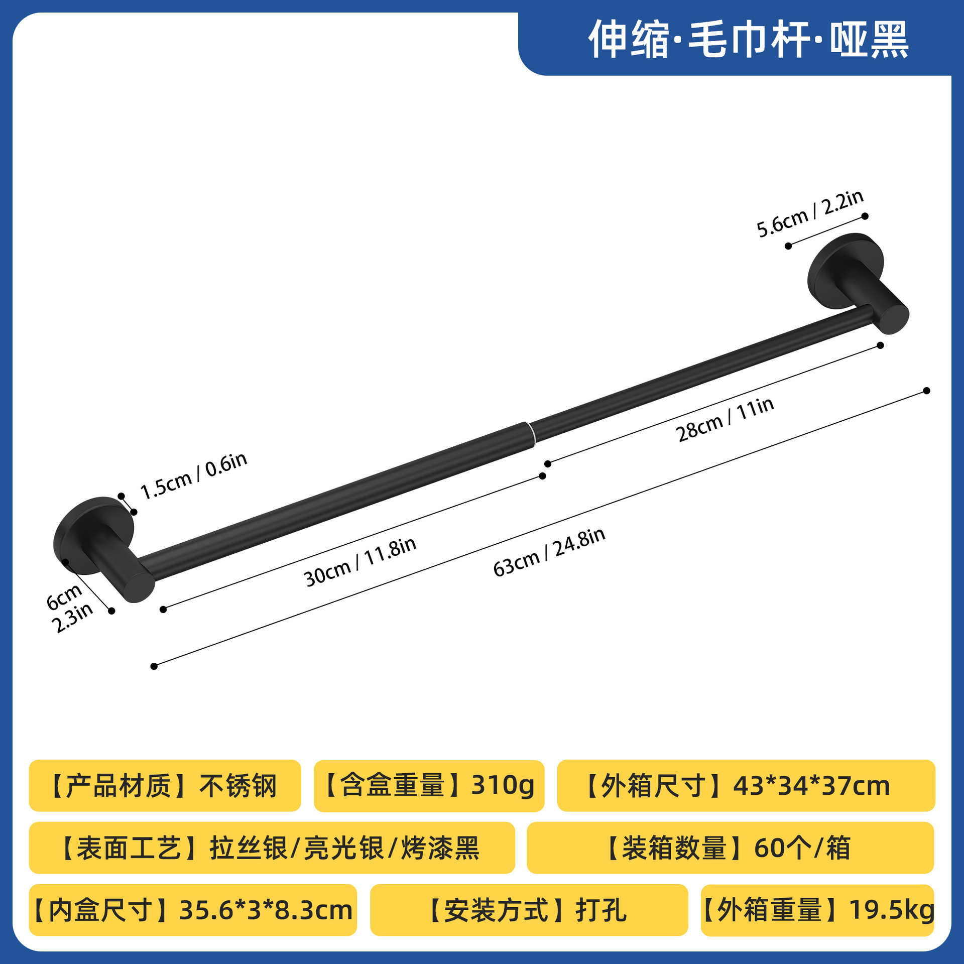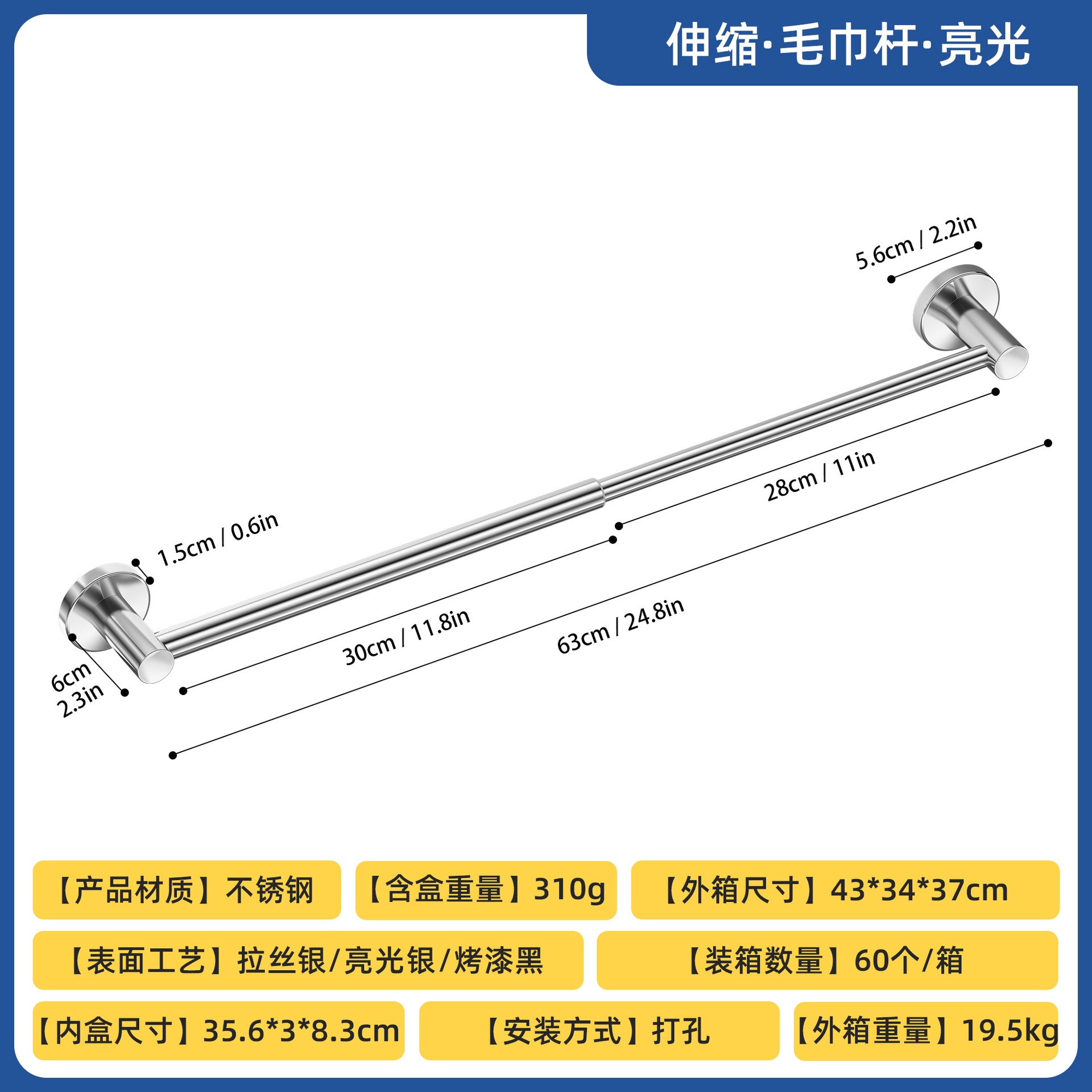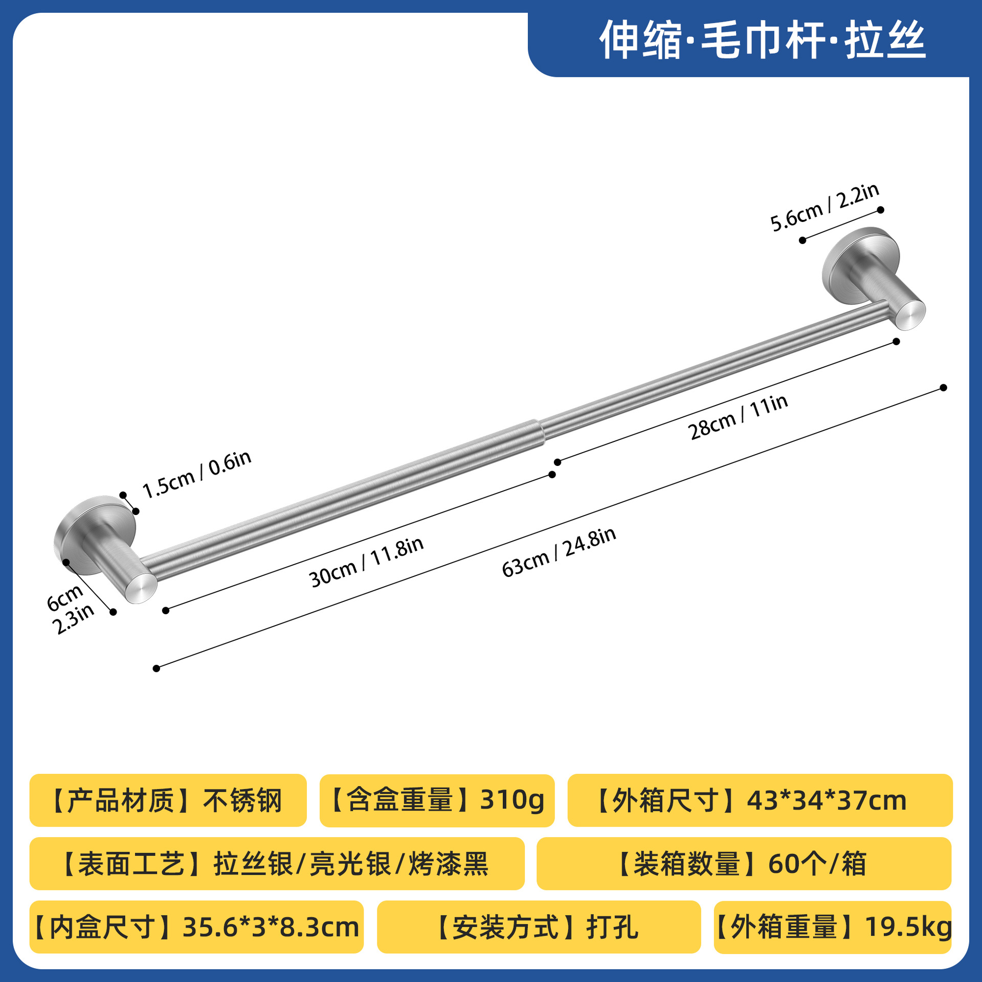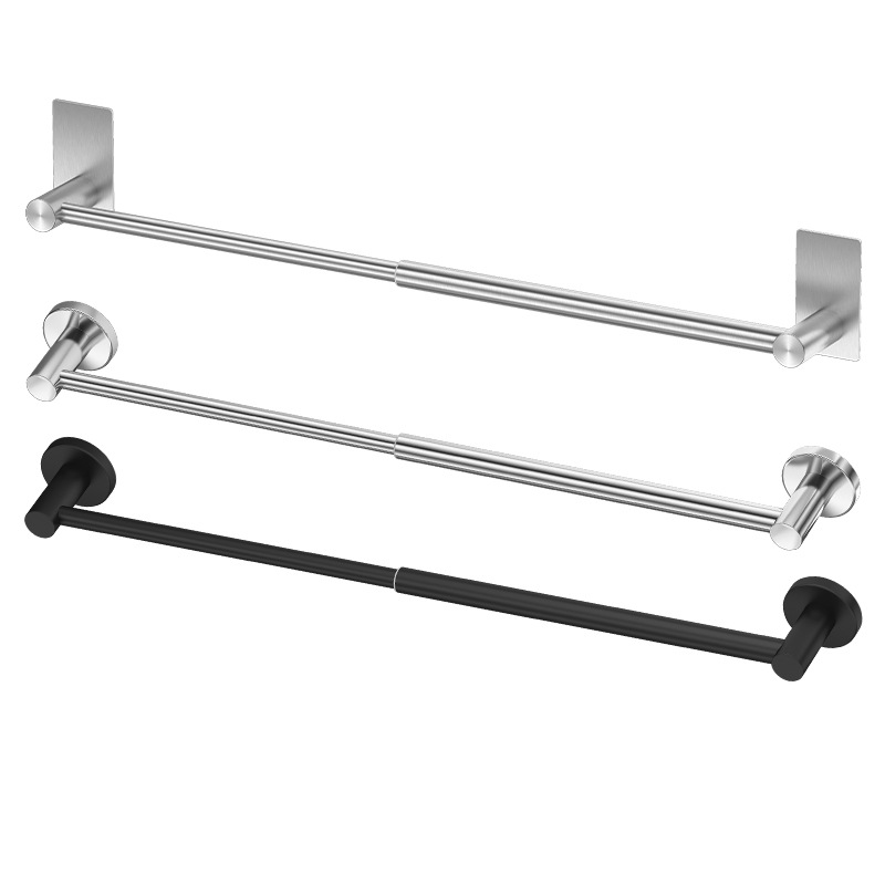 自粘不锈钢可伸缩毛巾架浴室卫生间毛巾杆可调节壁挂毛巾挂架