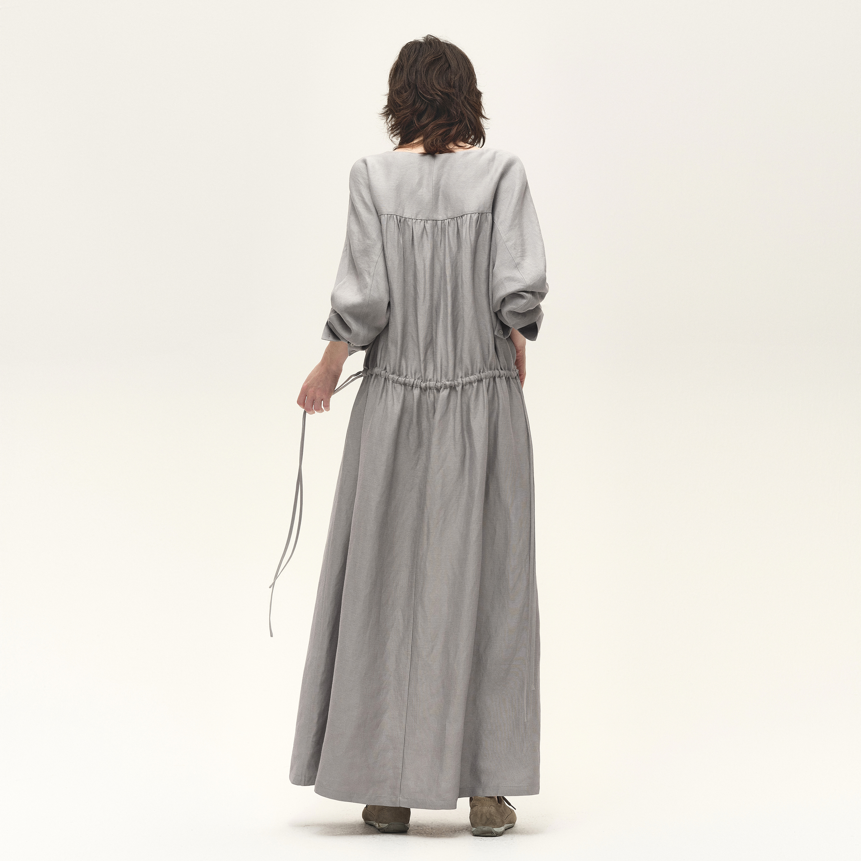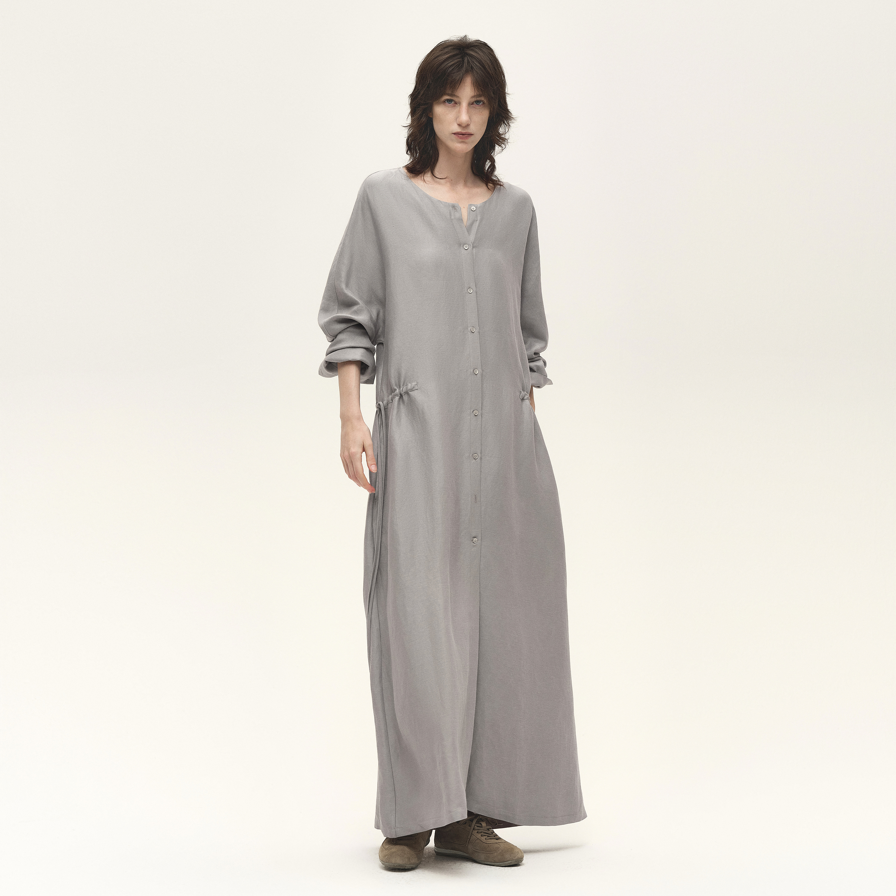 白弓“亚麻系列”清冷设计感可抽绳收腰宽松长袖衬衫连衣裙55828