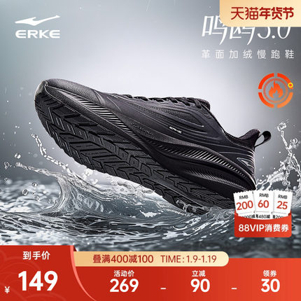 鸿星尔克鸣鸥3冬季跑步鞋男棉鞋加绒保暖轻便软底运动鞋防水男鞋