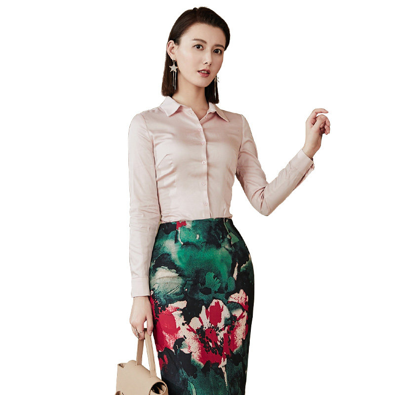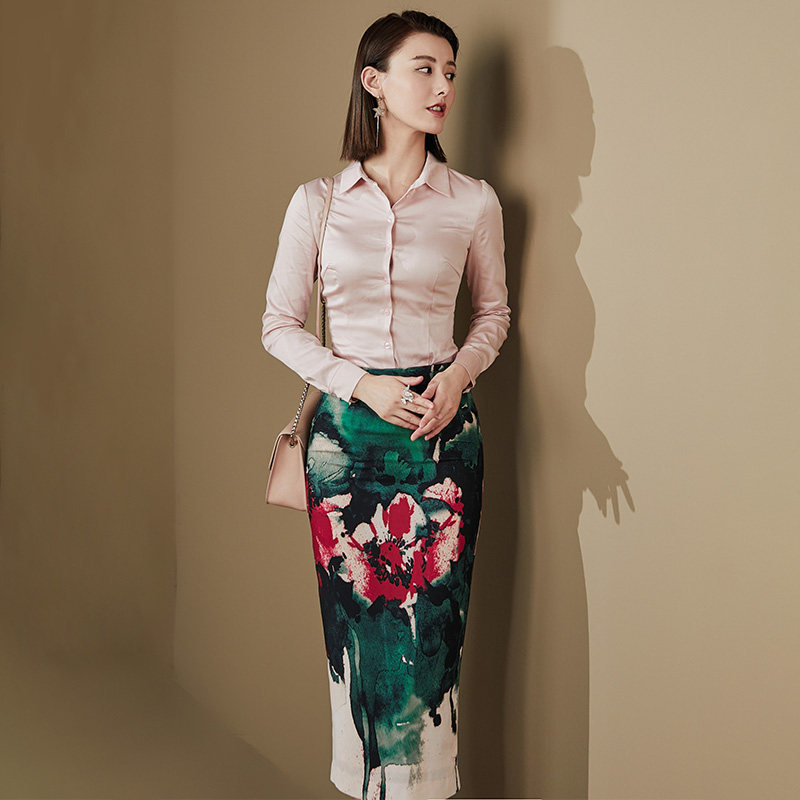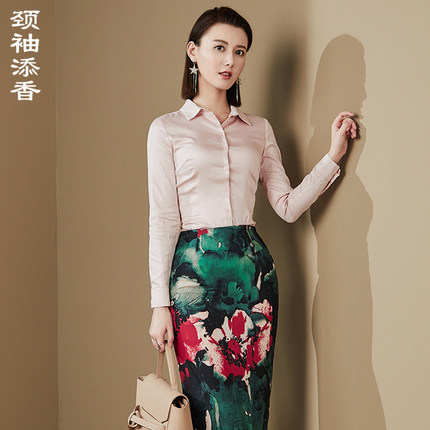 颈袖添香秋季新款蛇纹别致气质时尚修身印花通勤女士衬衫