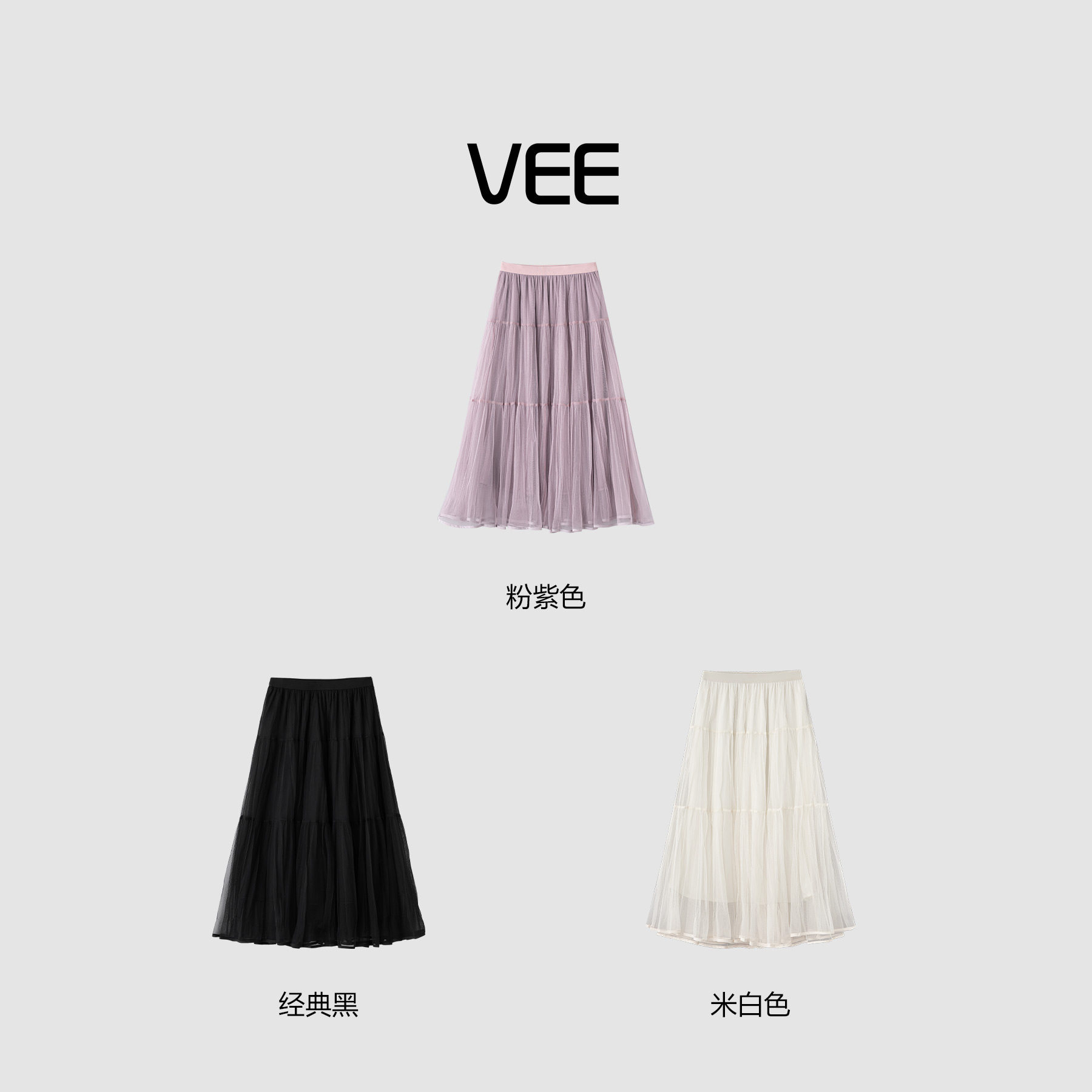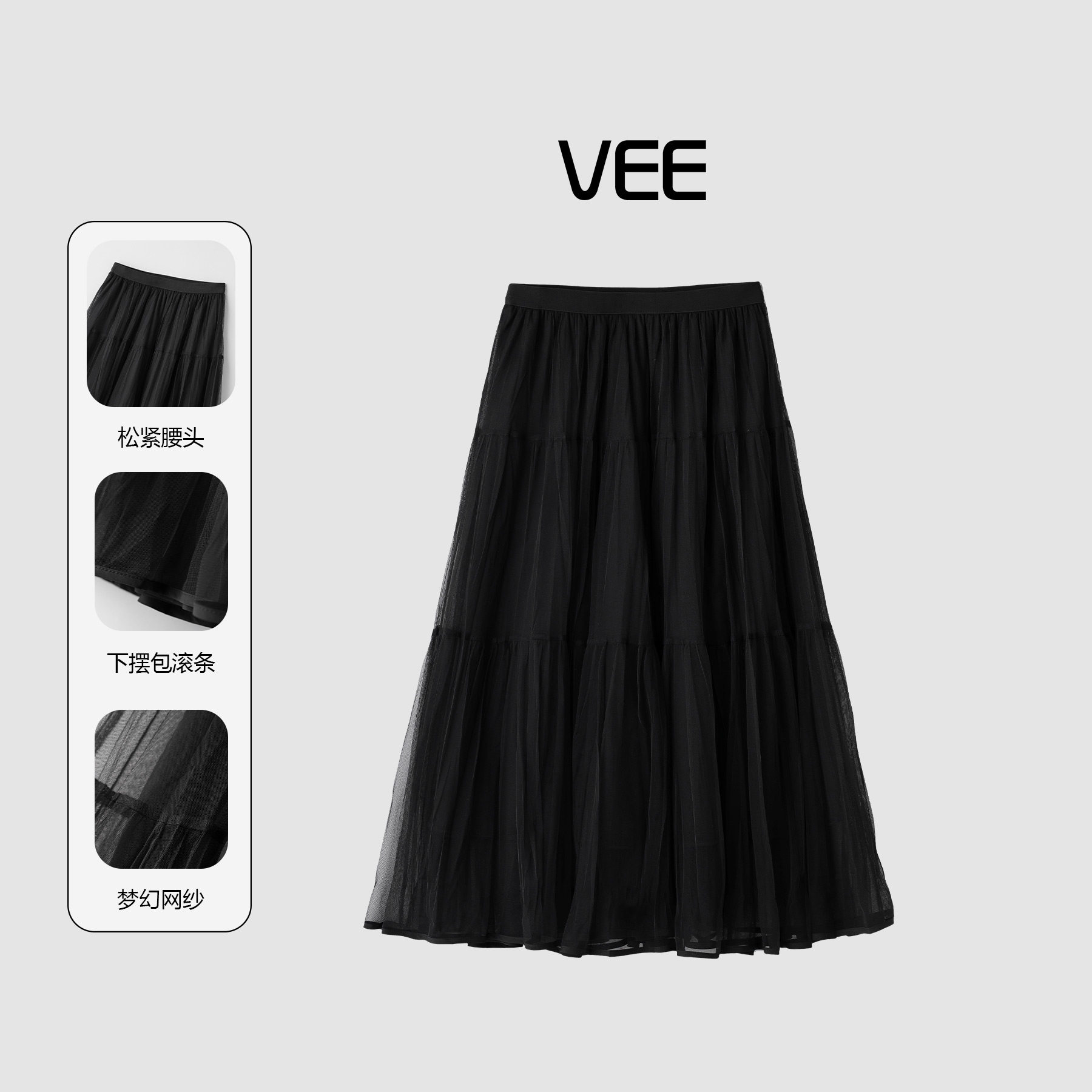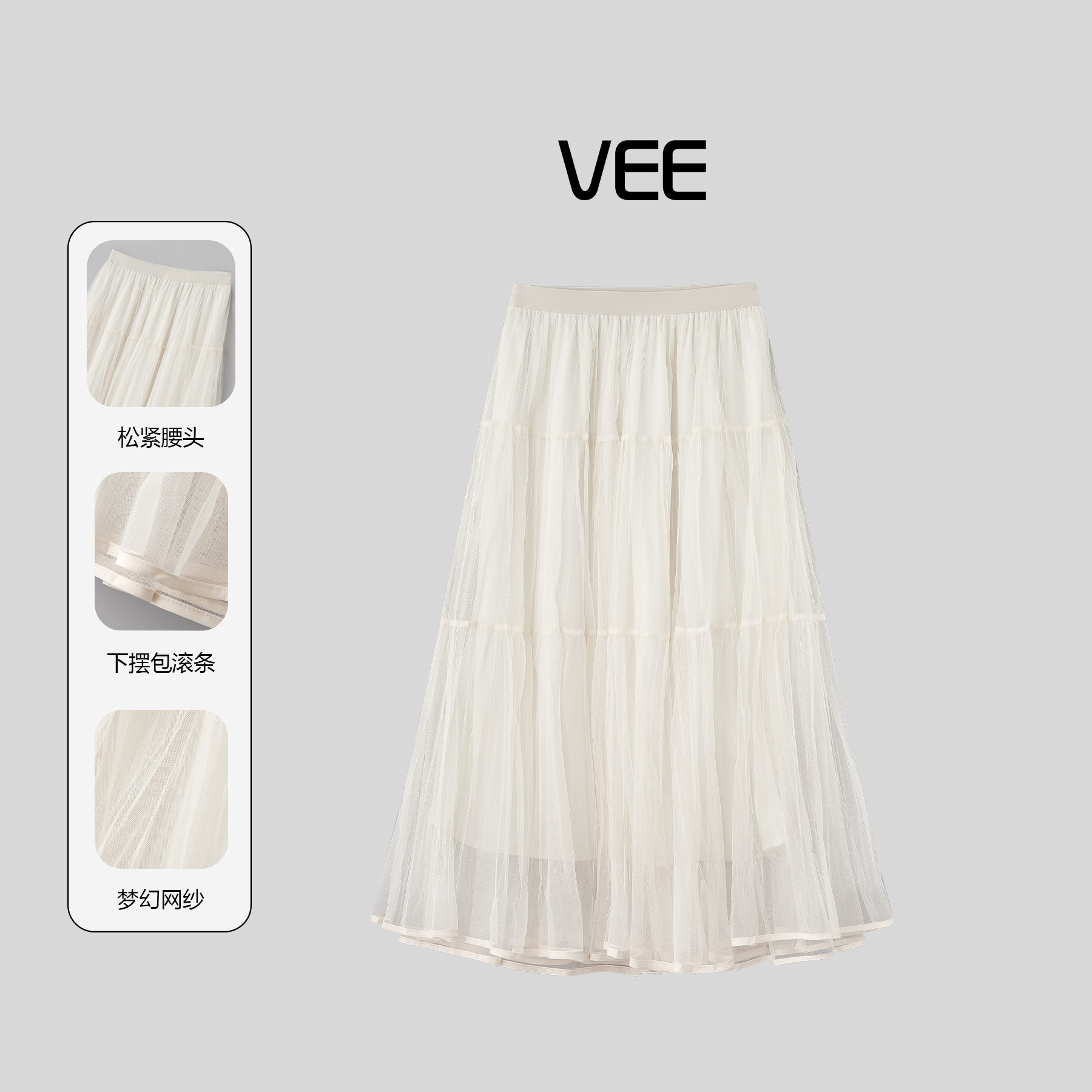 VEE【小浪漫】仙女风网纱半身裙女松紧腰垂坠感大裙摆中长款裙子