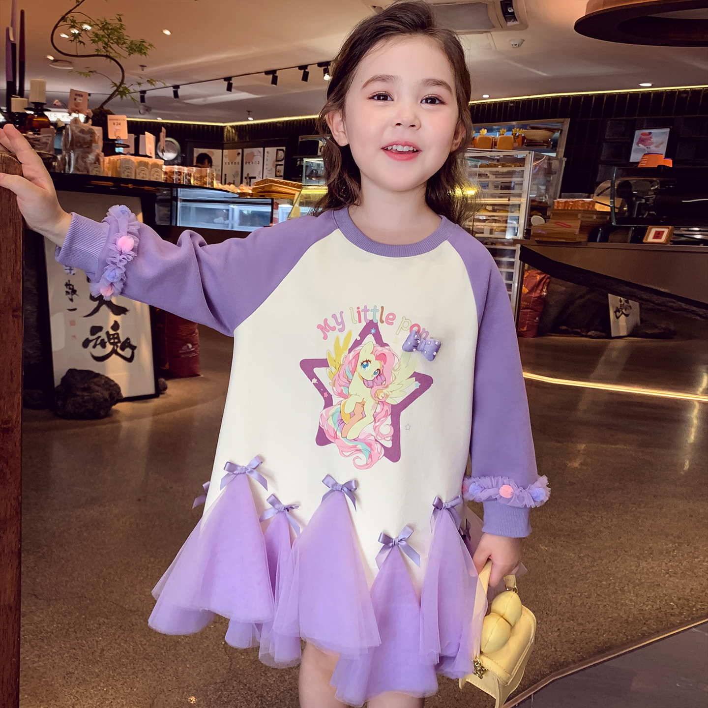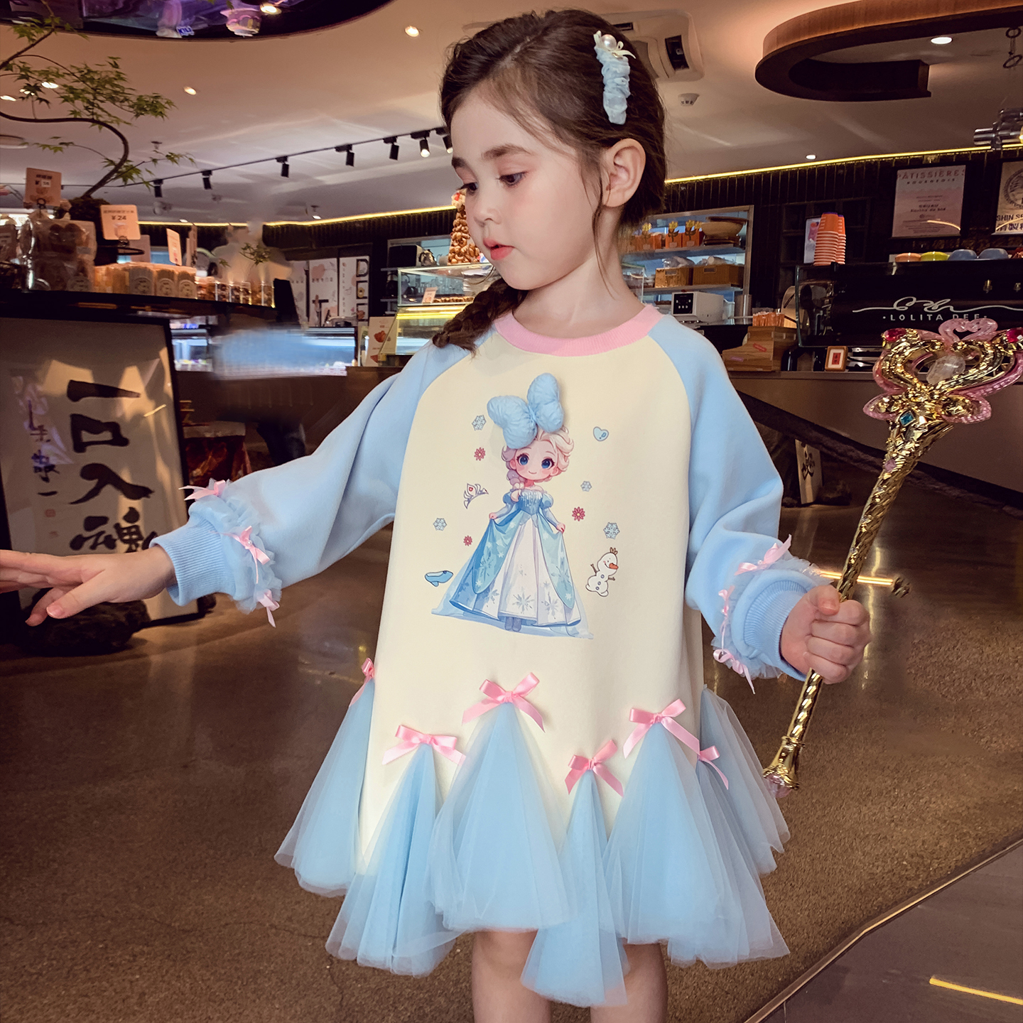 女童连衣裙秋装2025新款洋气儿童长袖拼接网纱卫衣裙小女孩公主裙