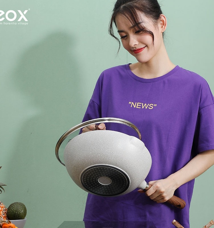 eox麦饭石不粘锅炒锅家用电磁炉炒菜锅煤气燃气灶专用不沾锅通