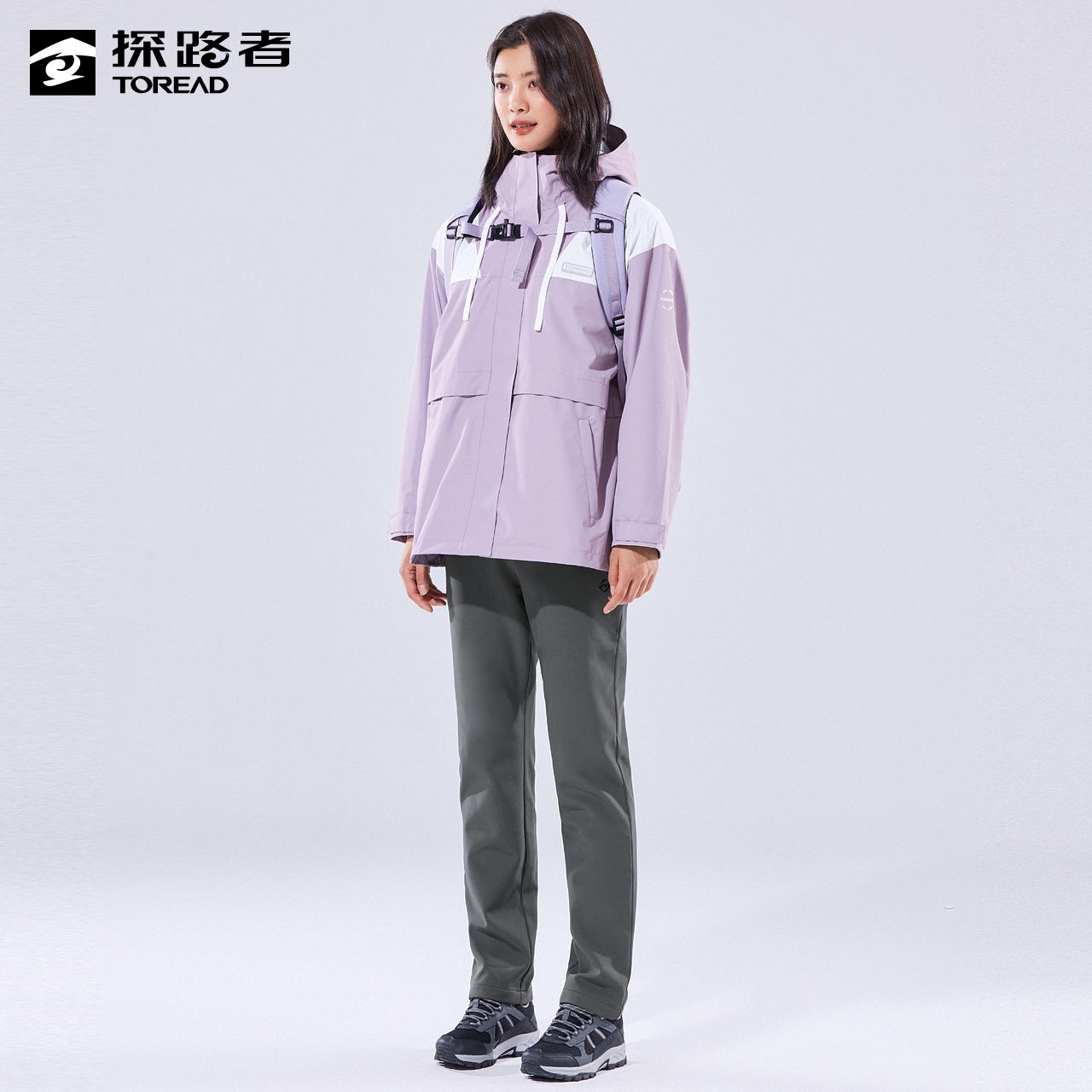 探路者软壳裤女2022秋冬季新款城市户外弹力运动休闲女款加绒长裤