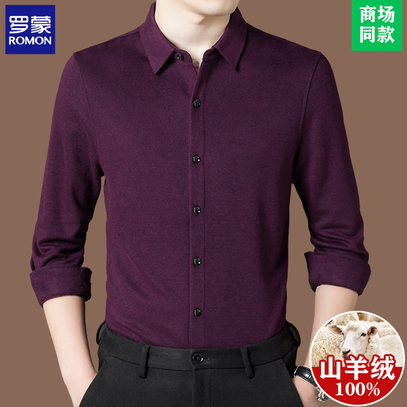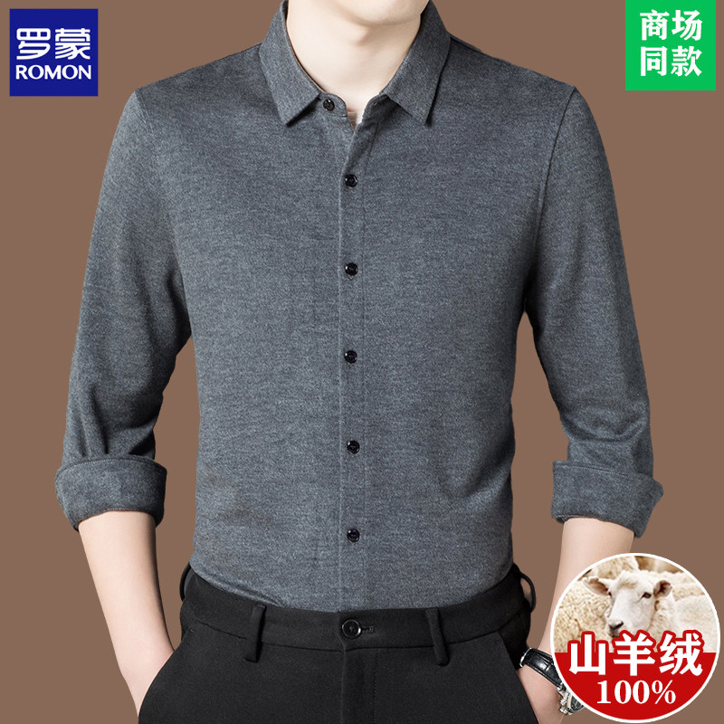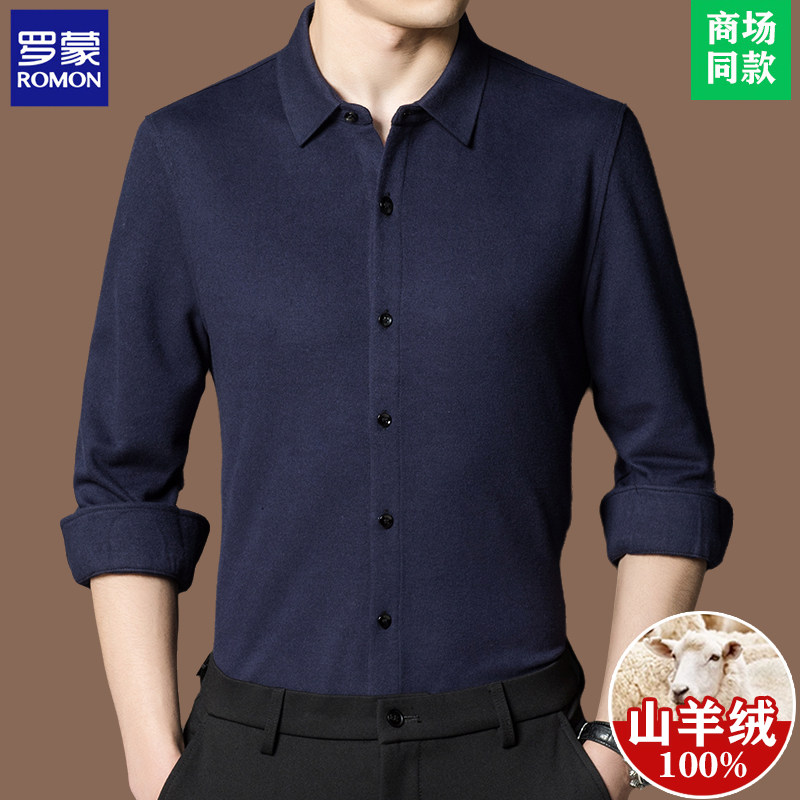 罗蒙正品高端羊绒衬衫男士长袖秋冬季加厚中年休闲加绒保暖衬衣