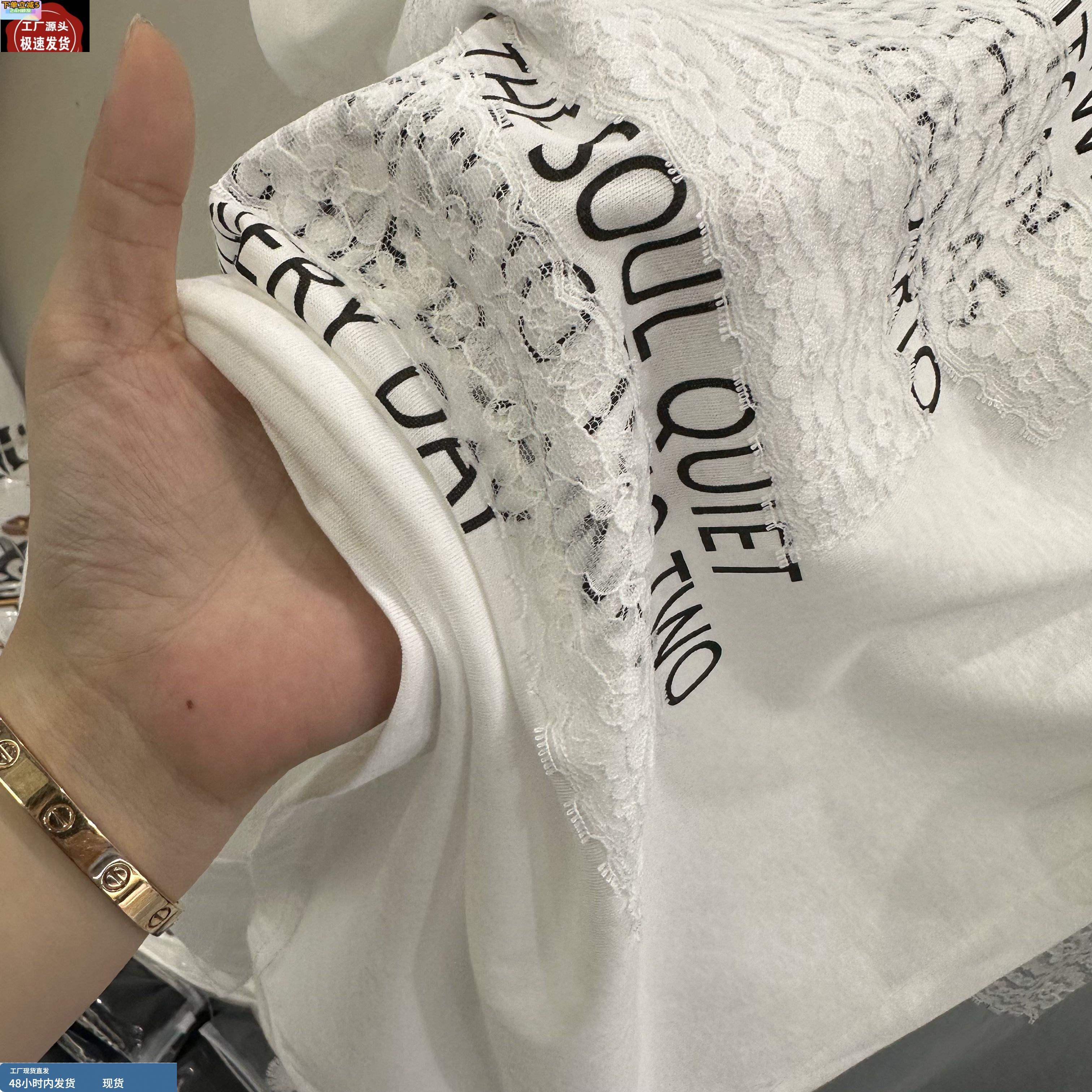 短袖T恤女2025春夏新款欧韩货蕾丝拼接宽松百搭显瘦网红上衣ins潮
