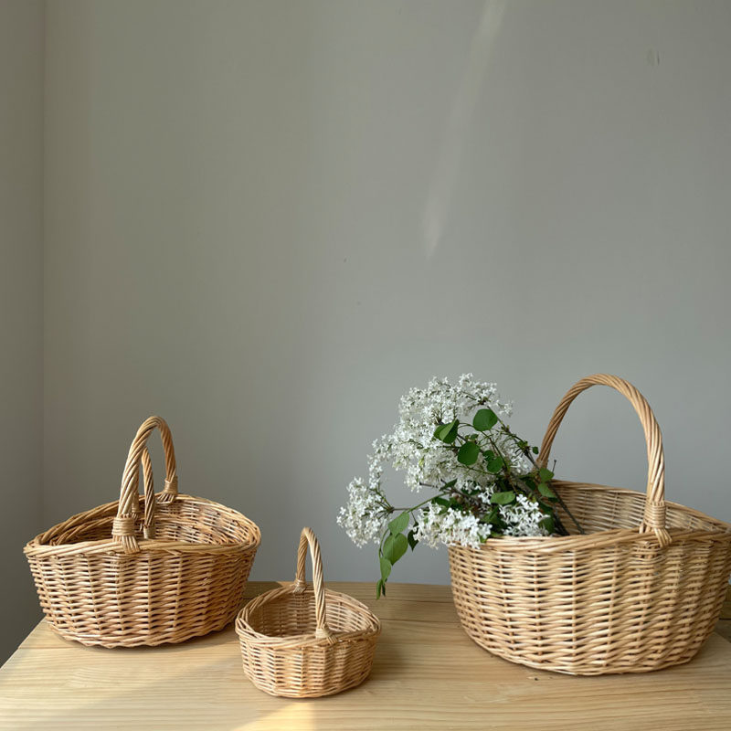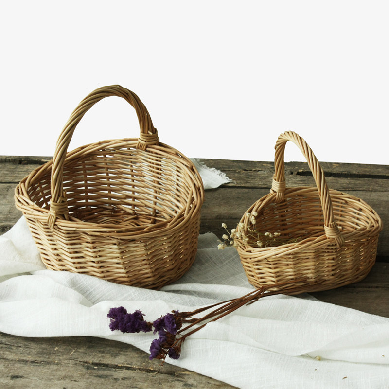 采摘篮子藤编收纳篮柳编手提篮水果篮手工编织筐篮月子花篮田园