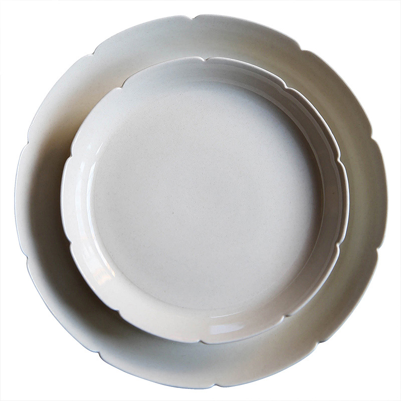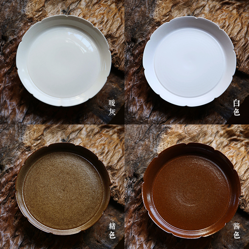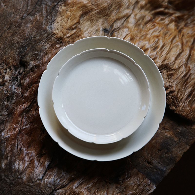 中式风格碟子花口盘草木灰釉壶承宋代风格盘子点心盘茶点盘甜品盘