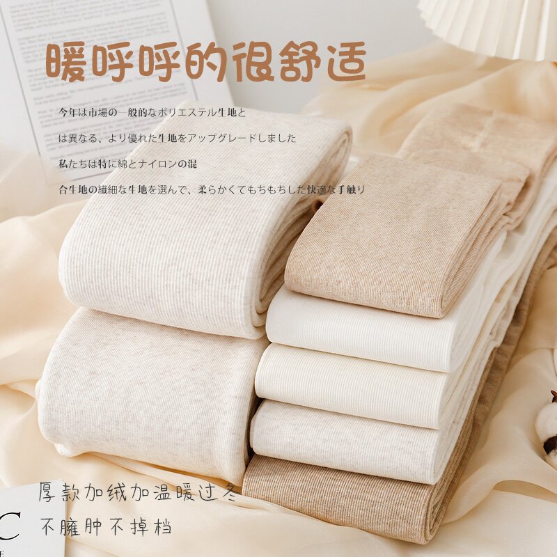 秋冬加绒白色连裤袜女外穿加厚燕麦色打底裤袜保暖显瘦米白色薄绒