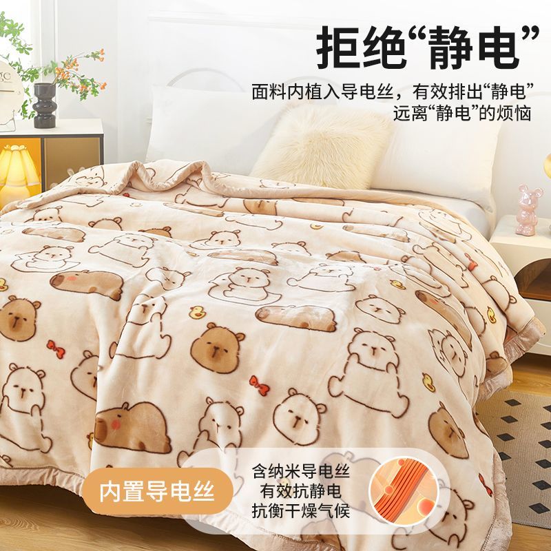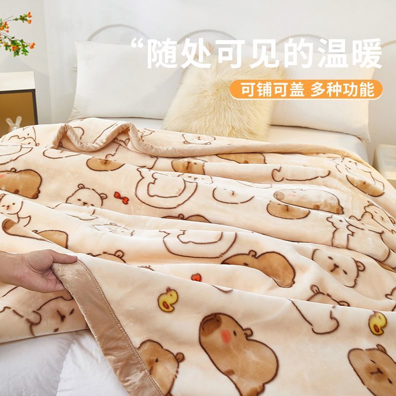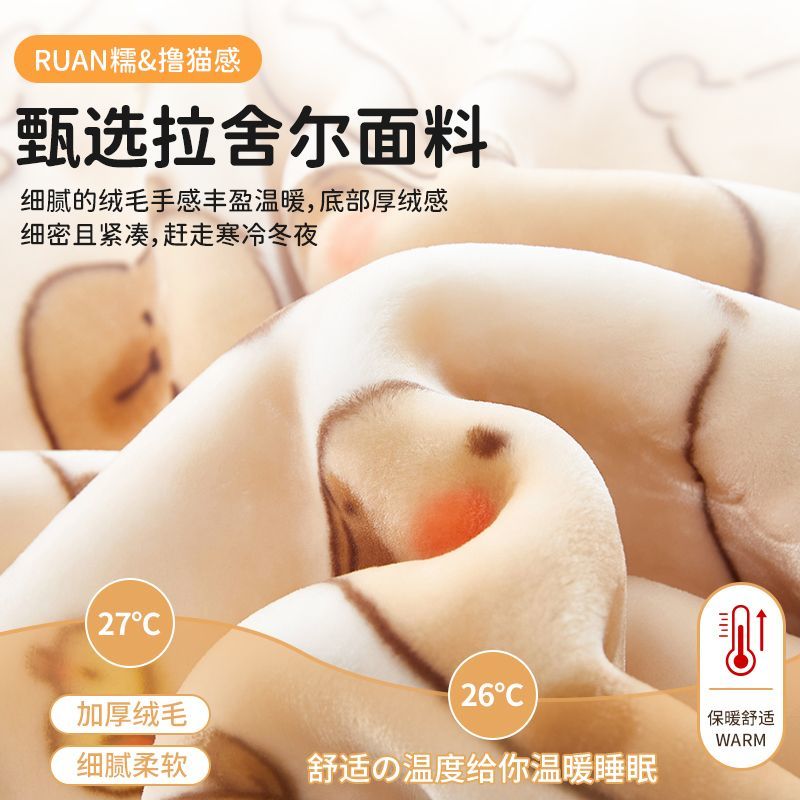 ABS拉舍尔毛毯冬季盖毯加绒午睡毯办公室学生宿舍珊瑚绒沙发毯子