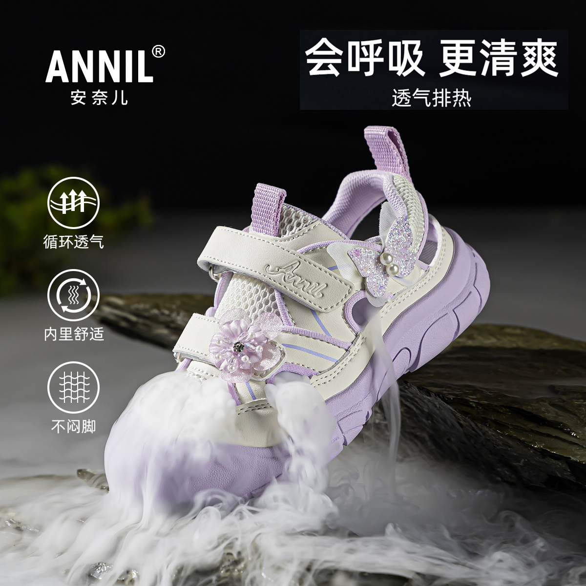安奈儿女童凉鞋包头2025新款夏季透气女孩公主运动大童儿童溯溪鞋
