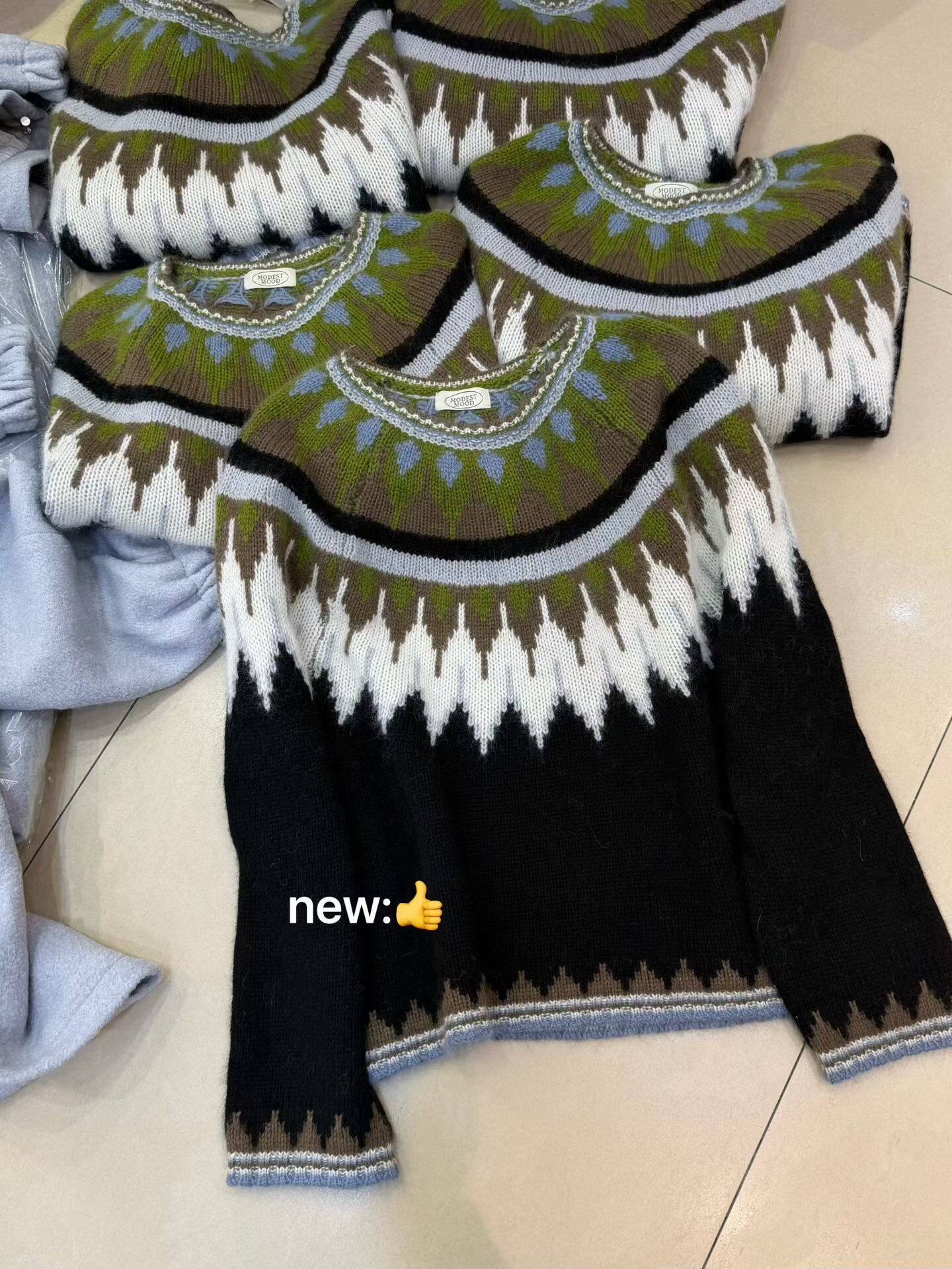 韩国东大门正品秋冬高品质圆领费尔岛羊绒羊毛提花宽松针织衫