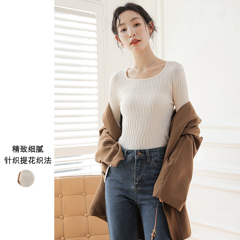 方领打底衫薄款气质女修身春装内搭高级感秋冬设计感针织低领毛衣
