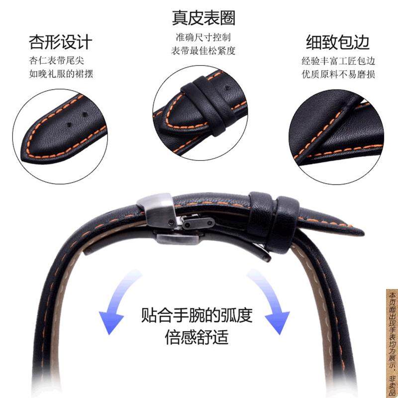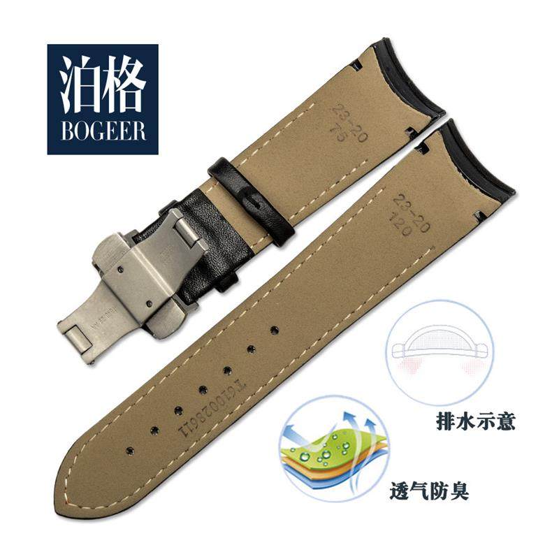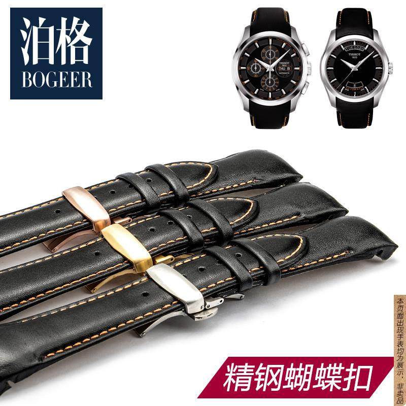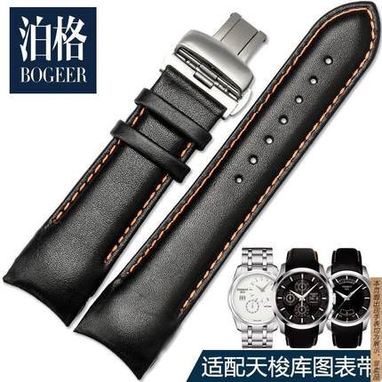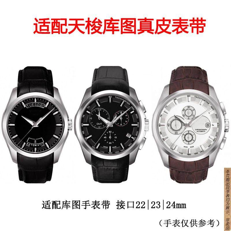 原厂代用天梭男士真皮表带库图T035.627系列弧形接口针纹222324mm