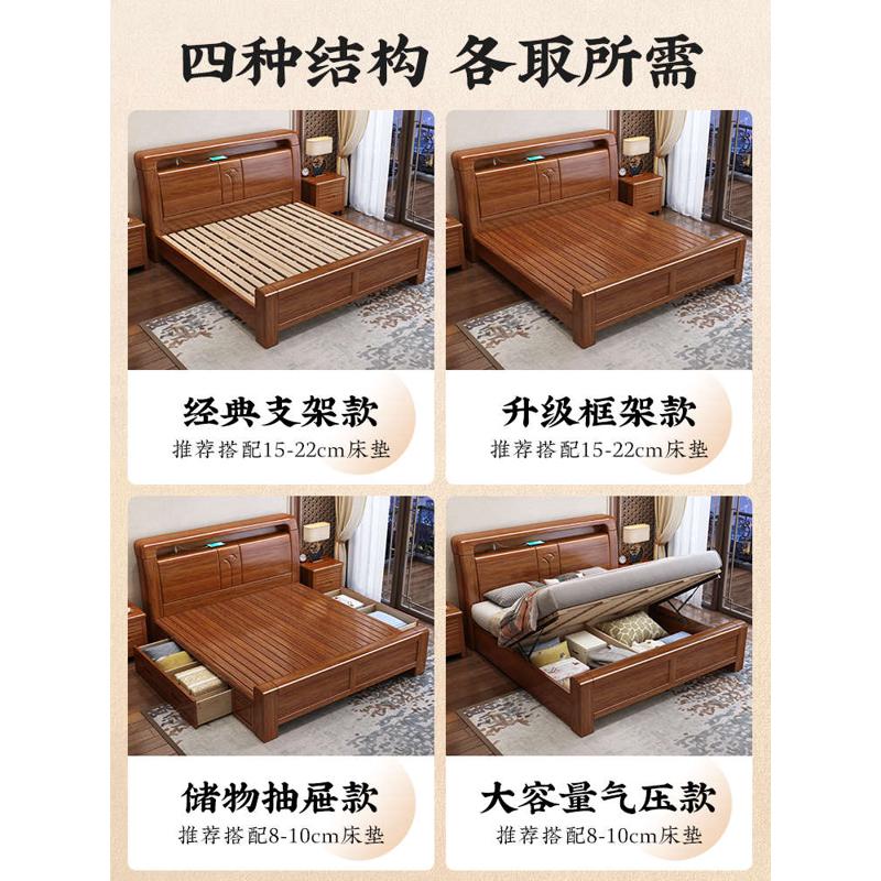 新品现代简约双人床主卧1.8米加厚储物床1.5米工厂直销床胡桃木实