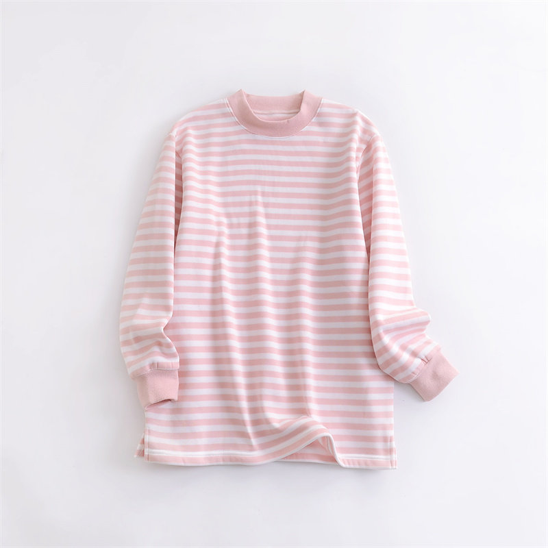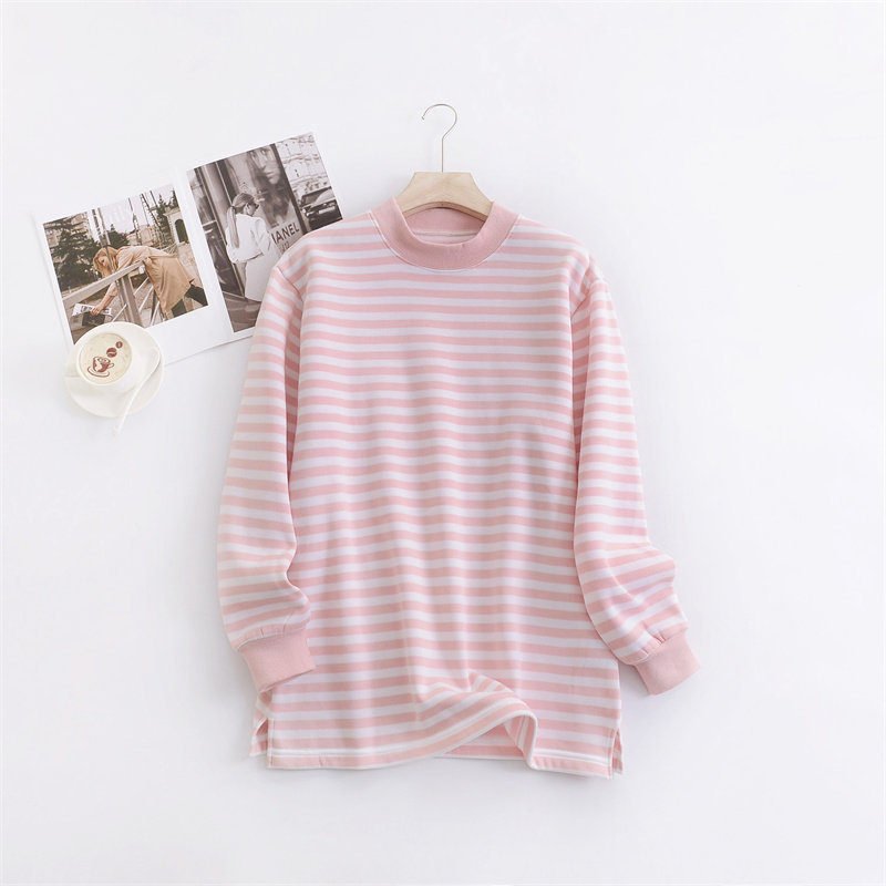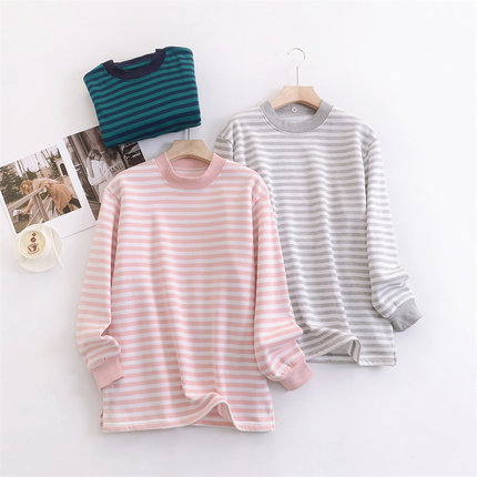 出口日本外贸女装条纹中长款打底衫薄绒宽松大码240斤可穿