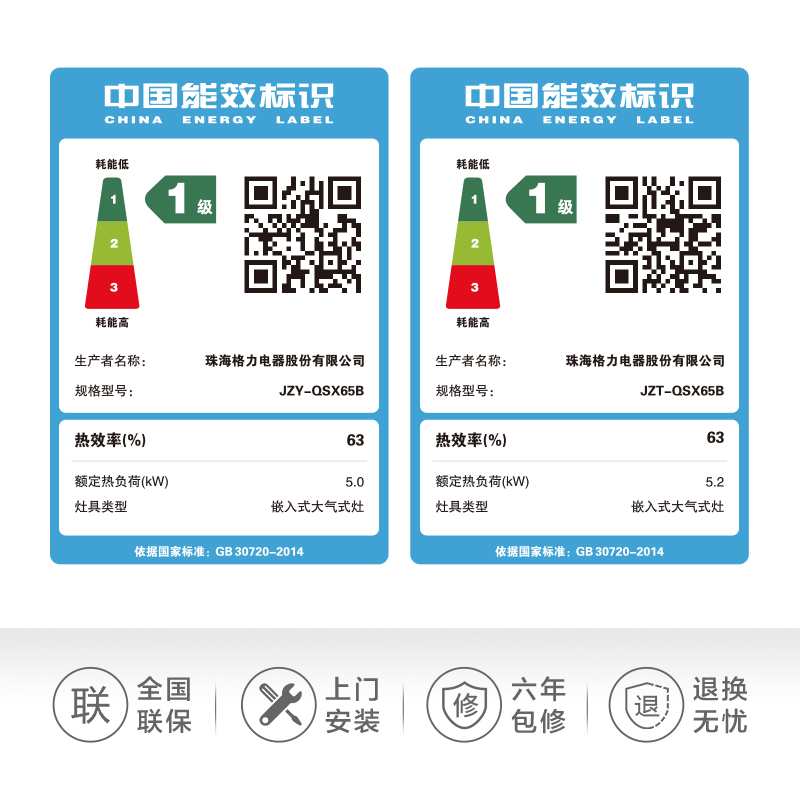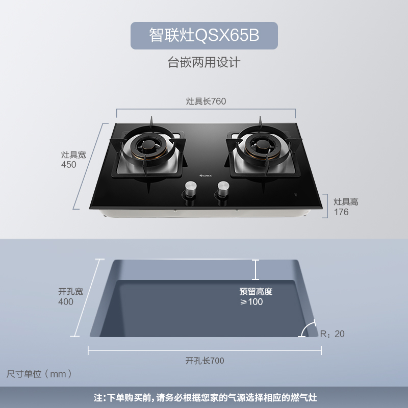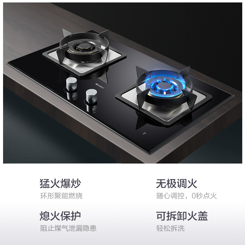 格力猛火燃气灶家用双灶嵌入台式天然气液化气两用一级能效X65B