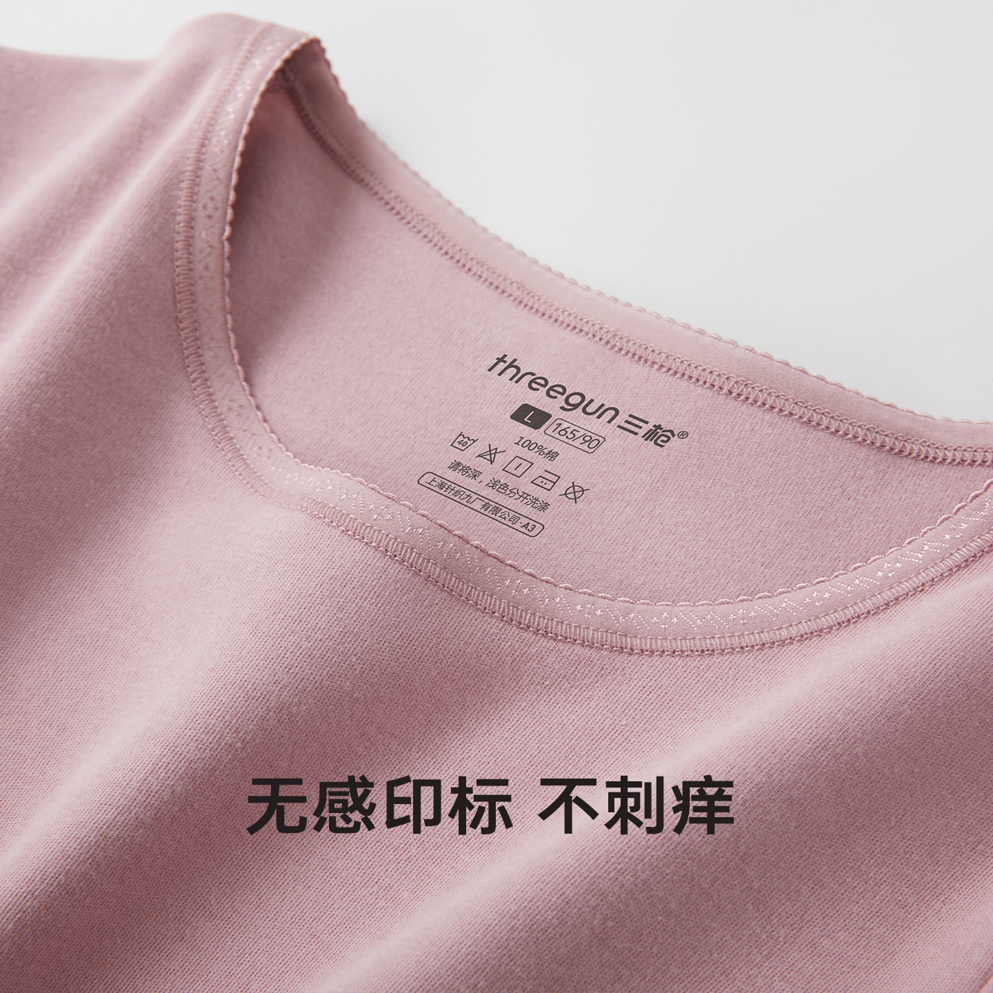 三枪秋衣女100%纯棉秋冬单件内衣女士保暖上衣全棉透气打底棉毛衫