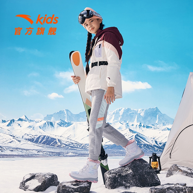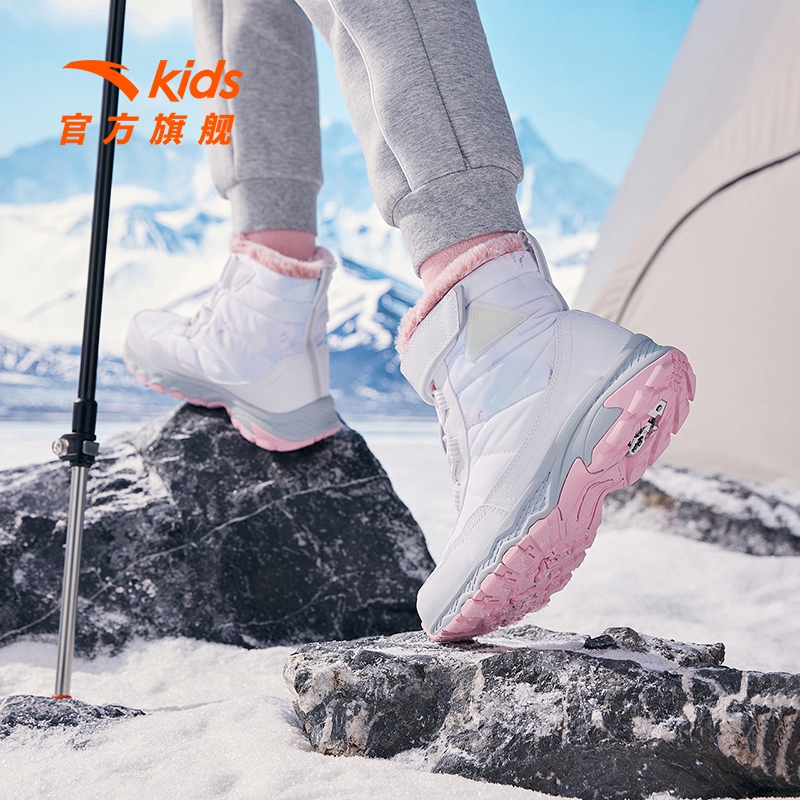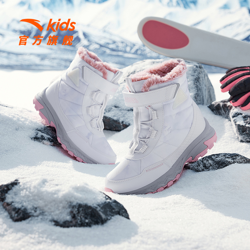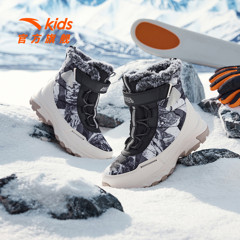 安踏儿童冬鞋短靴男童防滑加绒加厚大棉鞋大童雪地靴户外靴子女童