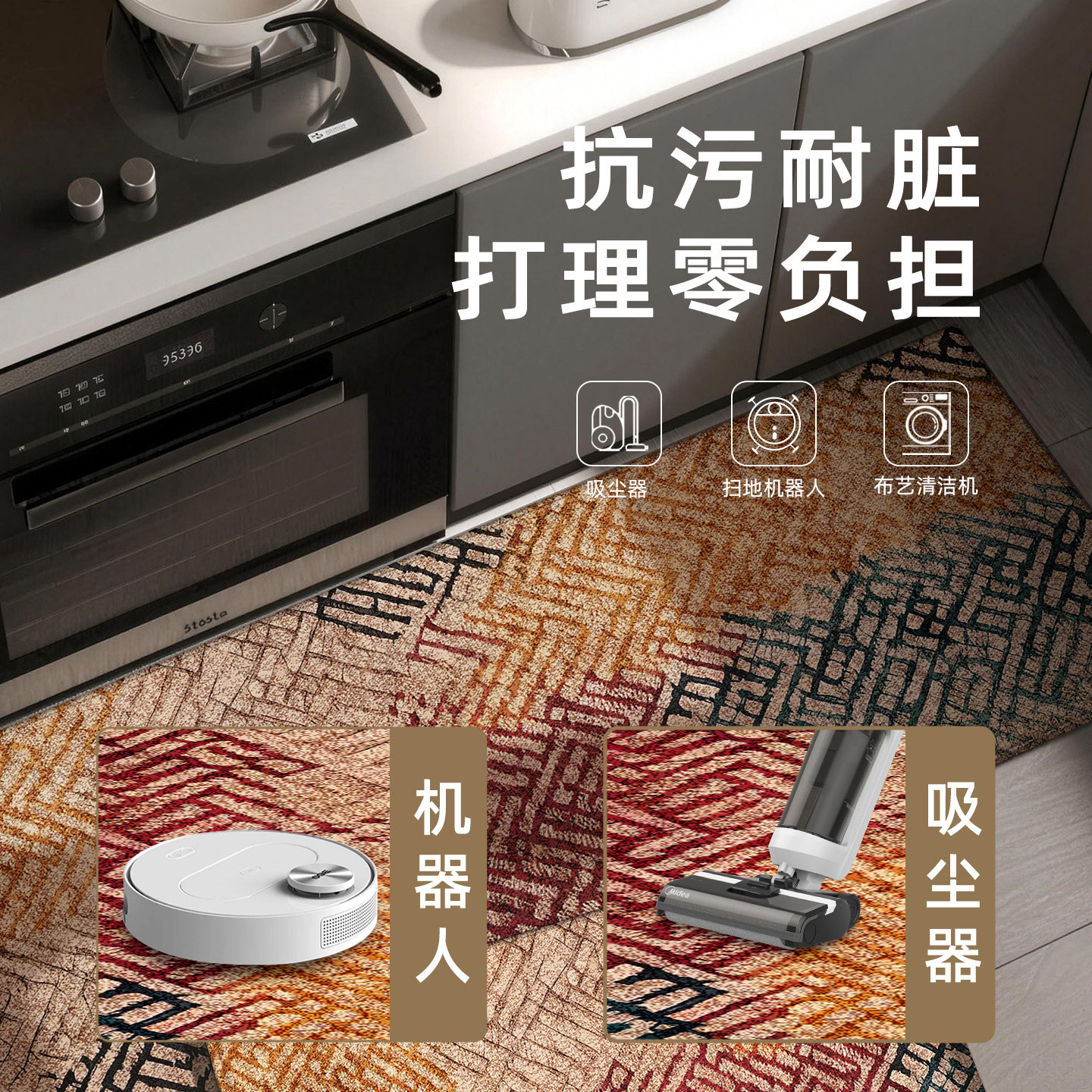 复古风厨房地垫家用免洗可擦脚垫