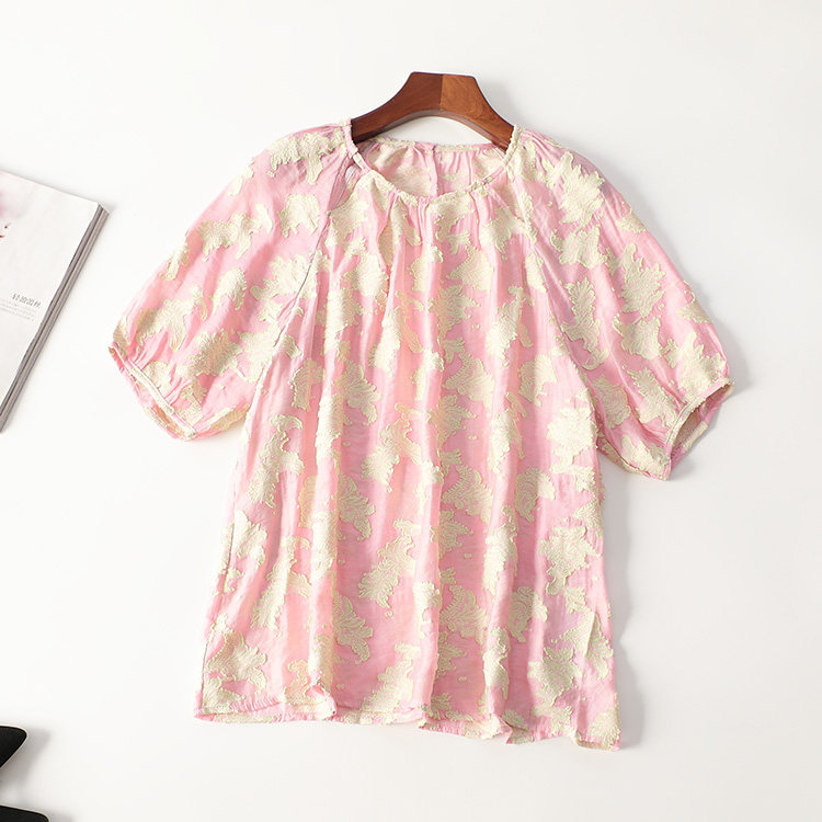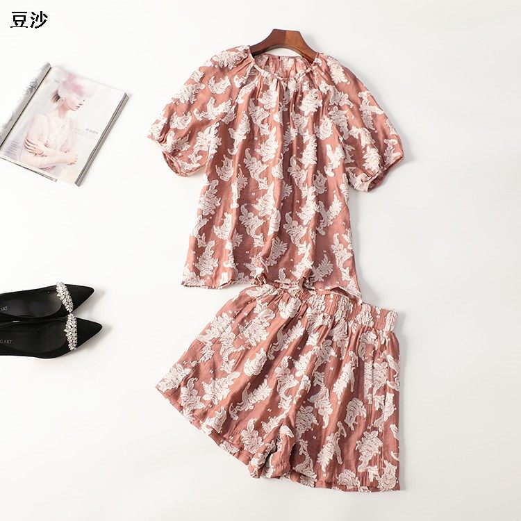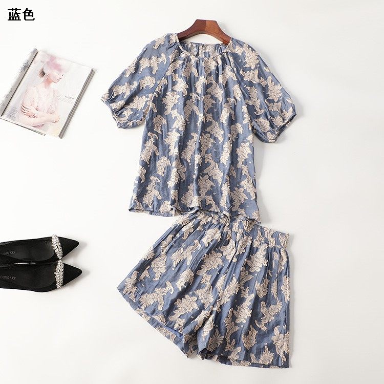 245975 夏天丝上衣裤子套装 深圳女短款短袖圆领
