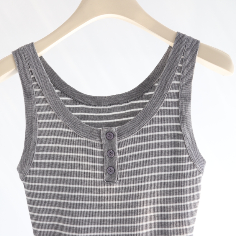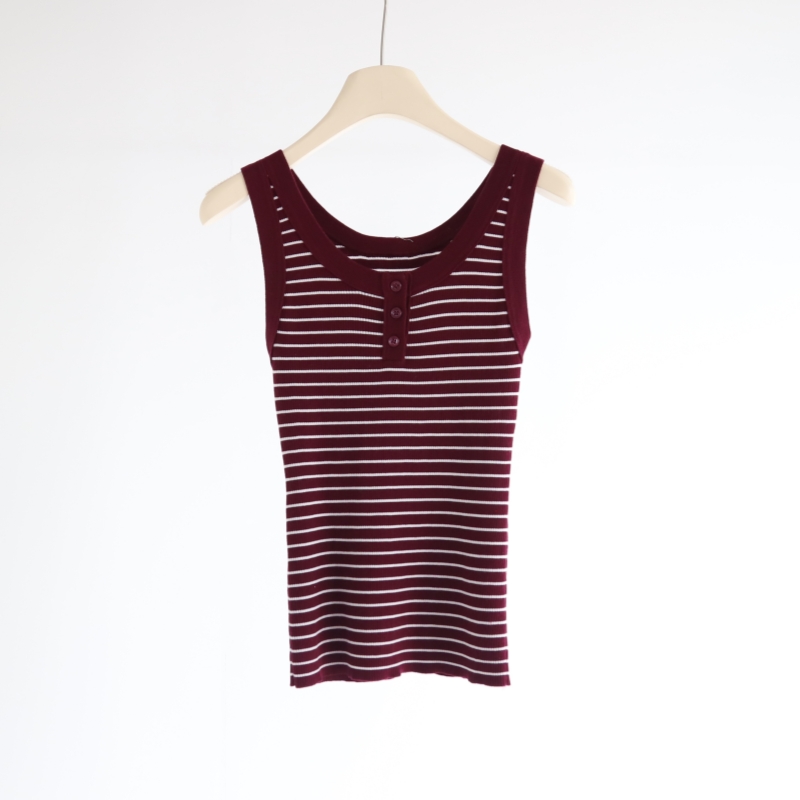 懒人穿搭 25夏新品天丝复古条纹针织背心修身显瘦百搭无袖上衣