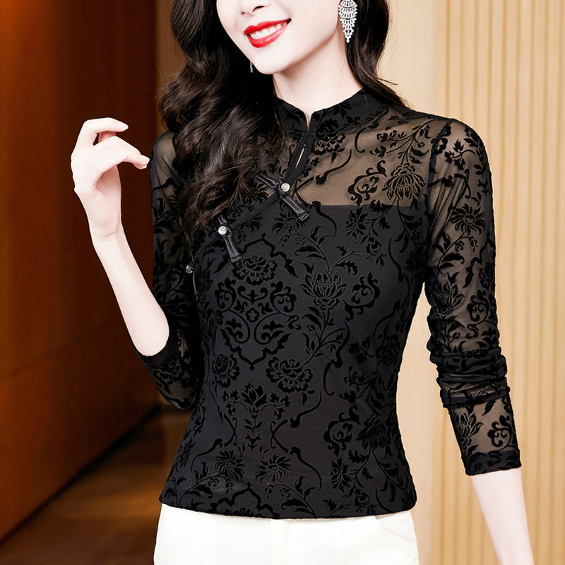 国风盘扣短袖t恤女夏装新款2025修身洋气时髦复古打底衫网纱上衣