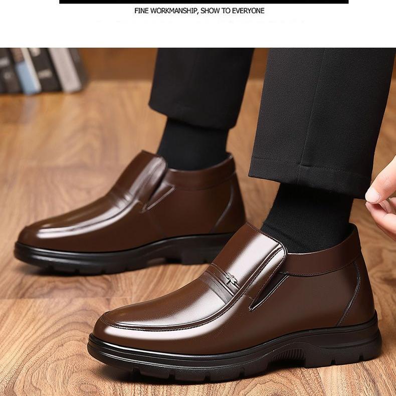 加绒防滑软底真皮爸爸鞋保暖冬季