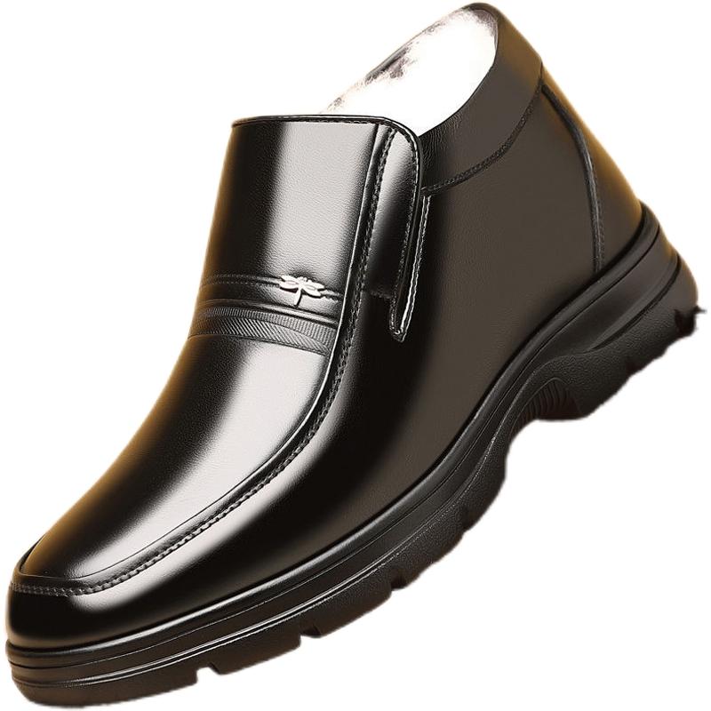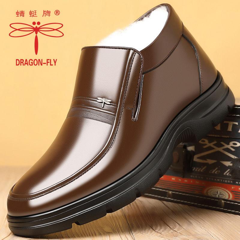 蜻蜓牌男鞋男冬季加绒保暖高帮皮鞋男真皮加厚羊毛中老年人爸爸鞋